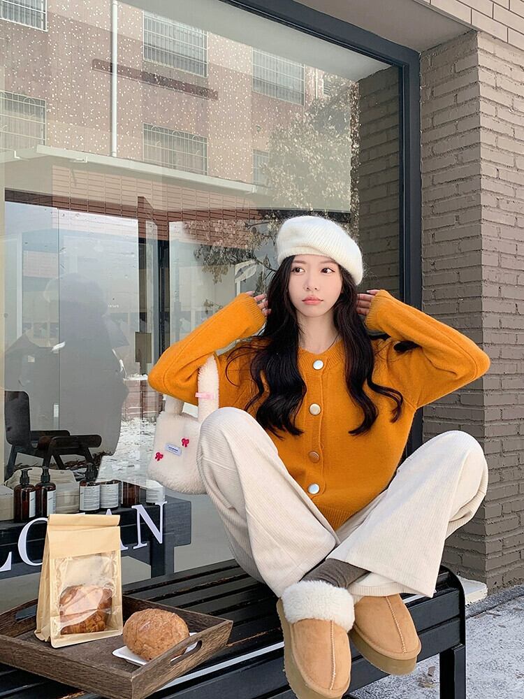 オレンジのセータージャケットの女性の秋冬 2024 新しいスタイル甘くて優しく、ハイエンドのファッショナブルな今年美しいニットカーディガン 大人ガーリー スウィート キュート カジュアル オータム 秋物 ウィンター 冬物 8571635789250136