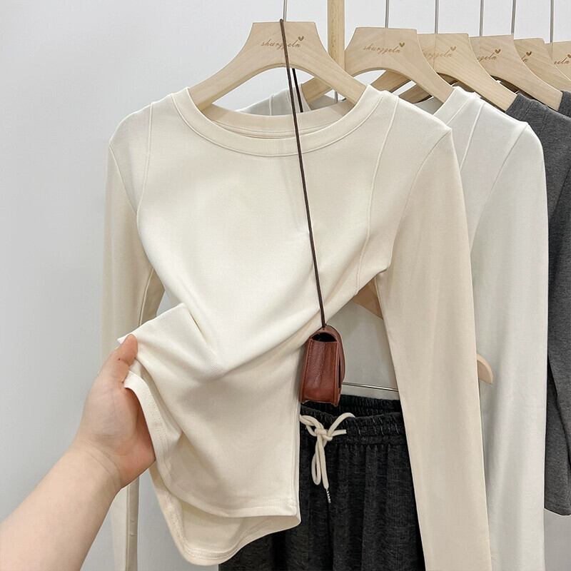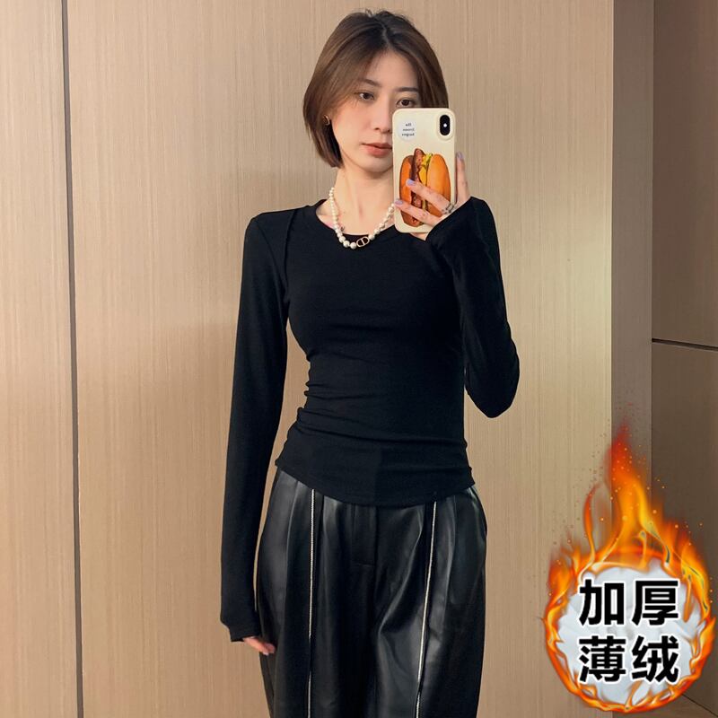 起毛肥厚ボトムシャツ女性の秋と冬スリムフィットトップ 2024 新しい小さな無地長袖 Tシャツ ロング オータム 秋物 ウィンター 冬物 ソリッドカラー 8571658007385619