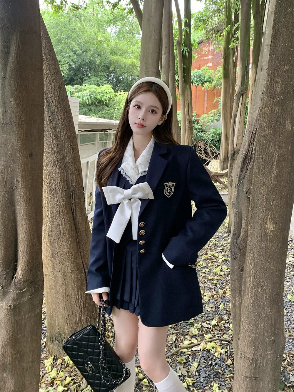 英国カレッジスタイル JK unim スーツジャケット女性秋 2024 新しいハイエンドの小さなネイビーブルーのスーツ オータム 秋物 8571689691967644