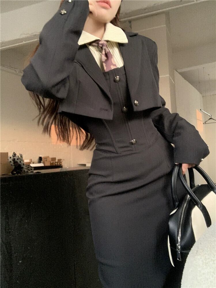 スタイル黒スーツジャケット女性秋 2024 ニューオールドマネースタイルハイエンドセンス小さなショートスタイル小さなスーツ ブラック オータム 秋物 8571610592791494