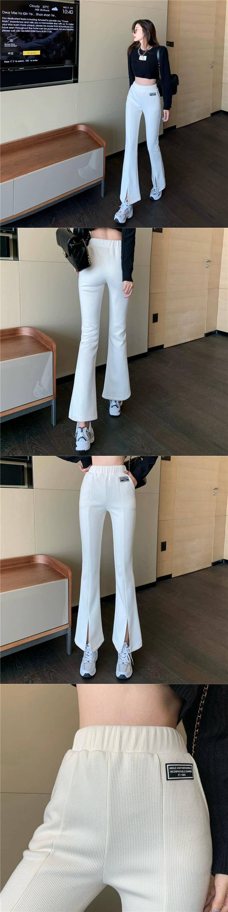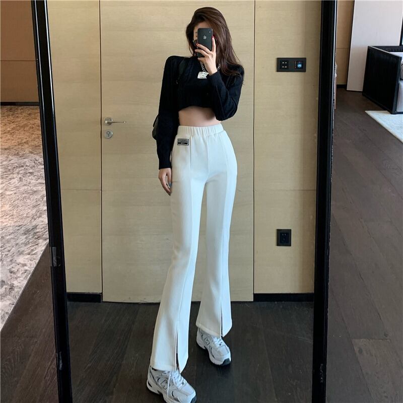 スリットマイクロフレアパンツ女性のベルベット肥厚2024秋冬新しいハイウエストスリム多目的カジュアルパンツ レッド オータム 秋物 ウィンター 冬物 8571689093846858