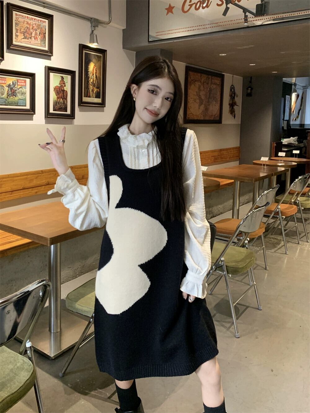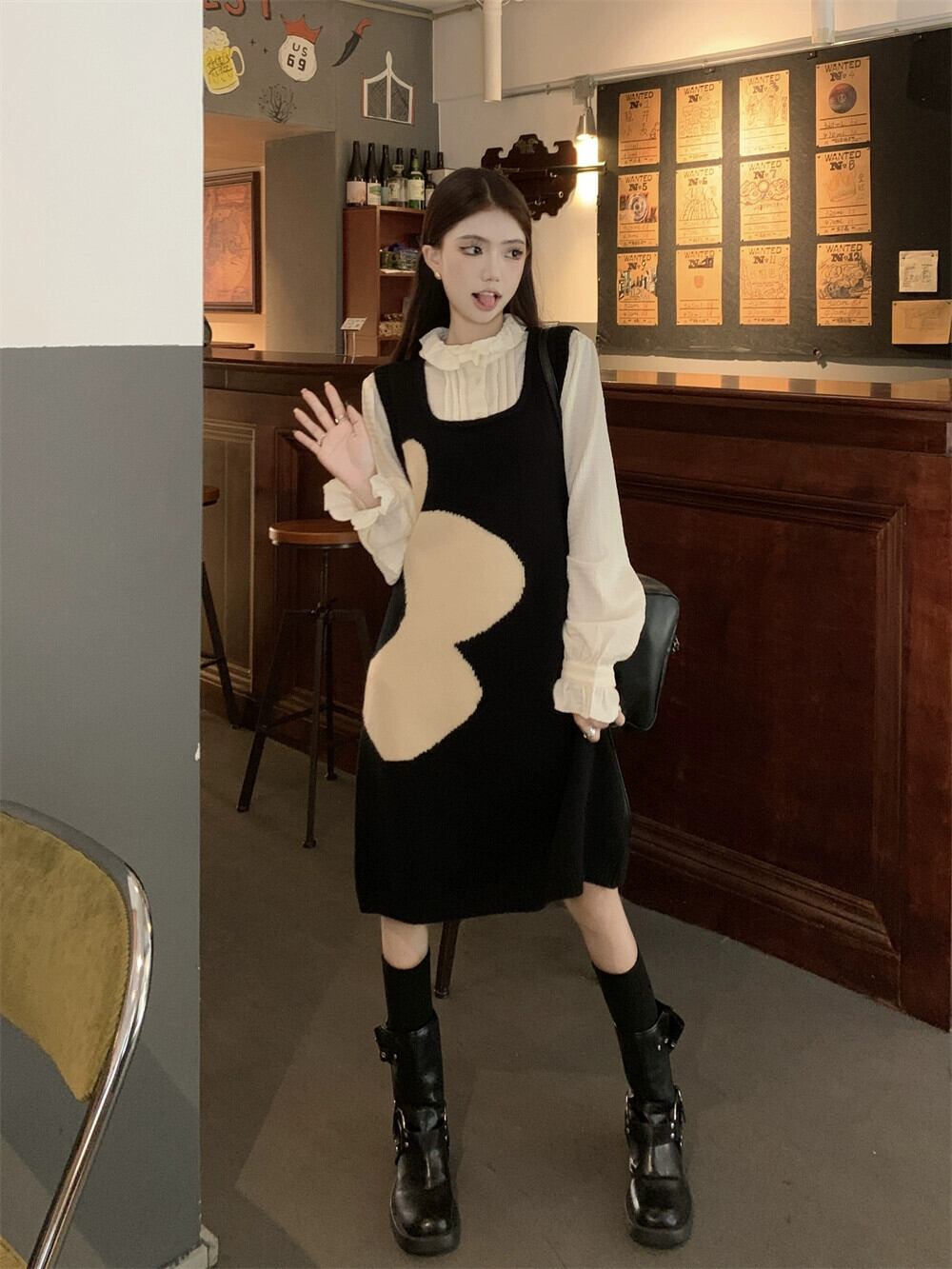 2024 年秋冬のジャカード ニット ベスト ドレス女性新しい年齢を減らし、黒のスカートを着ている超ハンサムな小男 ブラック オータム 秋物 ウィンター 冬物 8571669329362530