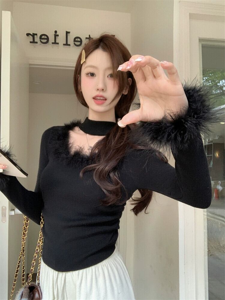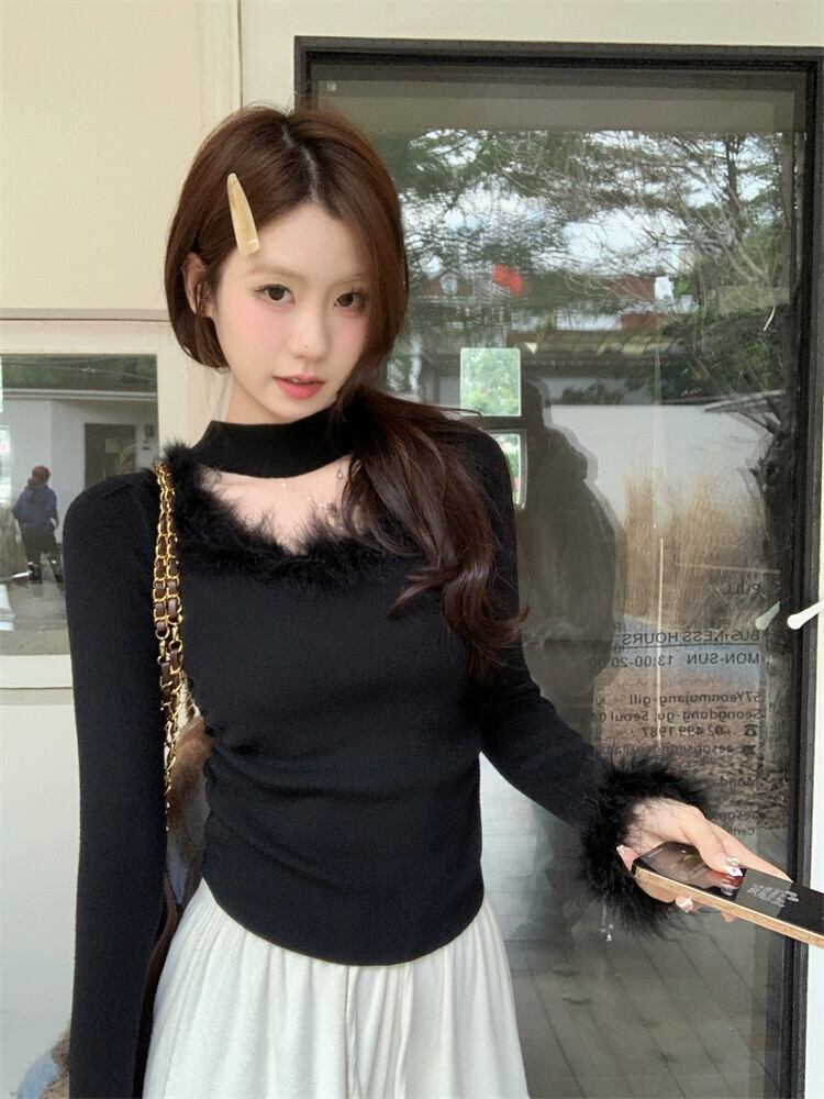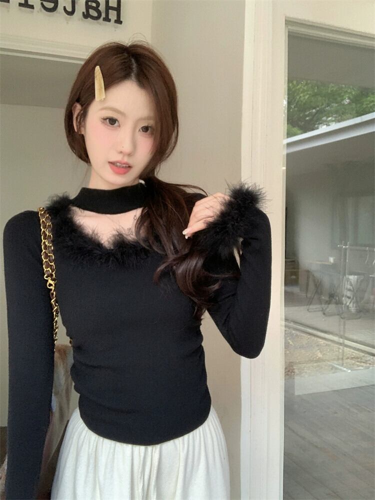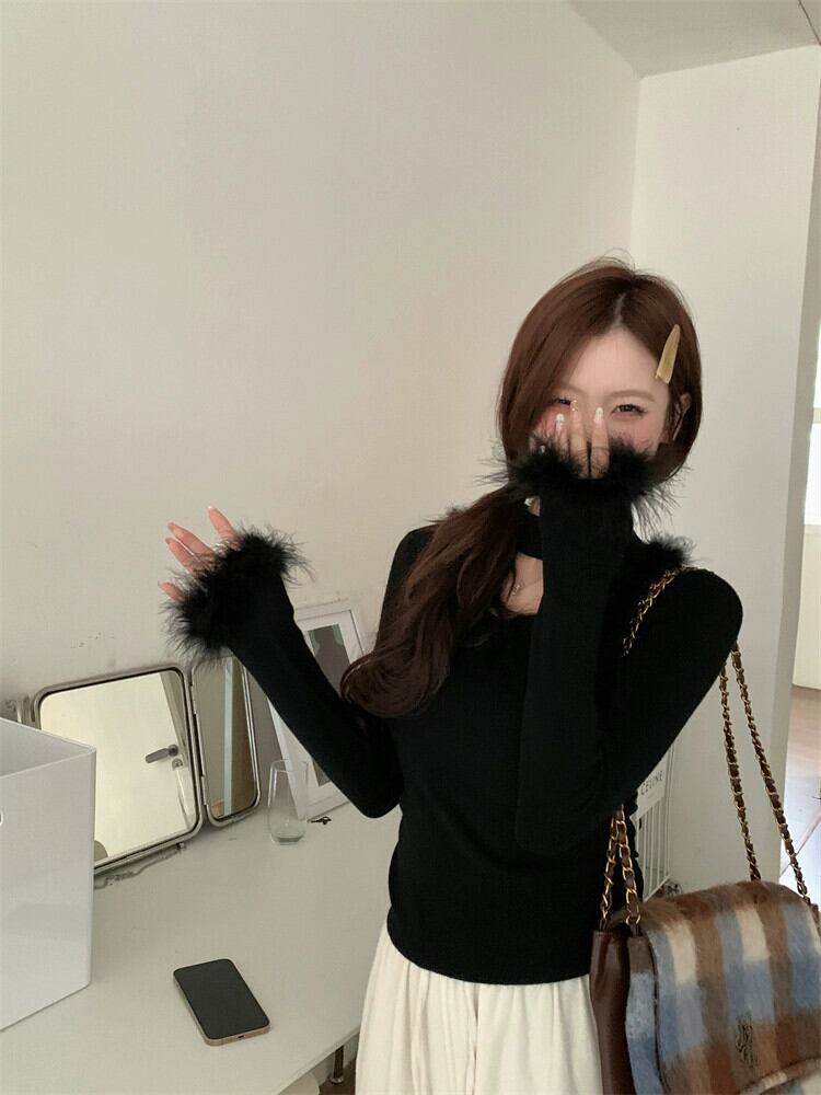 毛皮のようなスプライシングホルターネックセーターレディース、秋と冬のインナーレイヤリングシャツ、とても素敵なデザイン、スリムフィットのトップリトルピープル オータム 秋物 ウィンター 冬物 8571635905740237