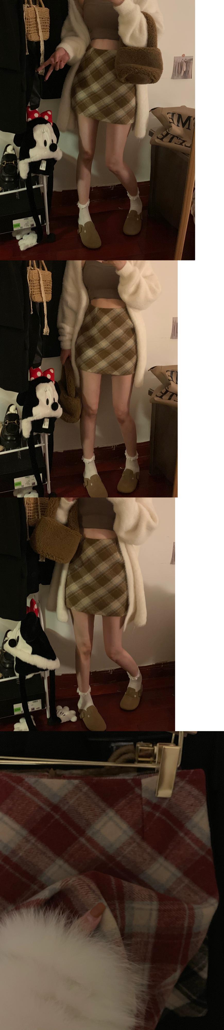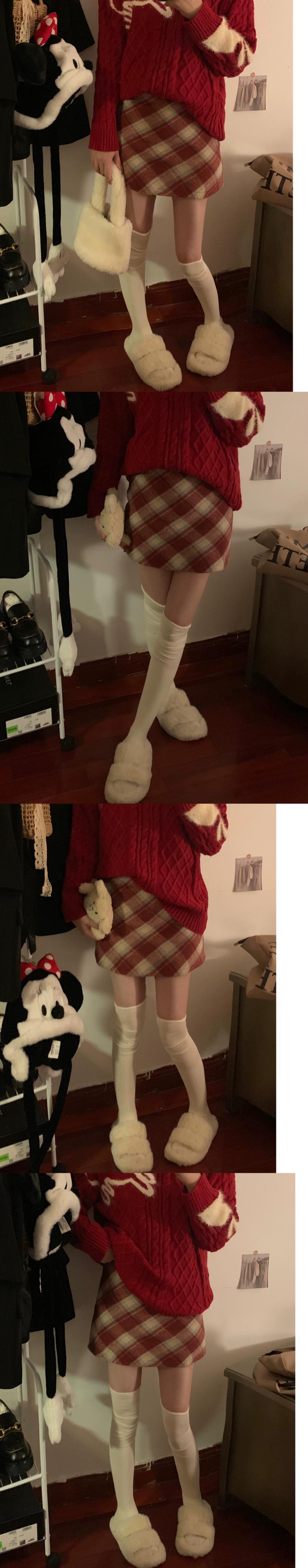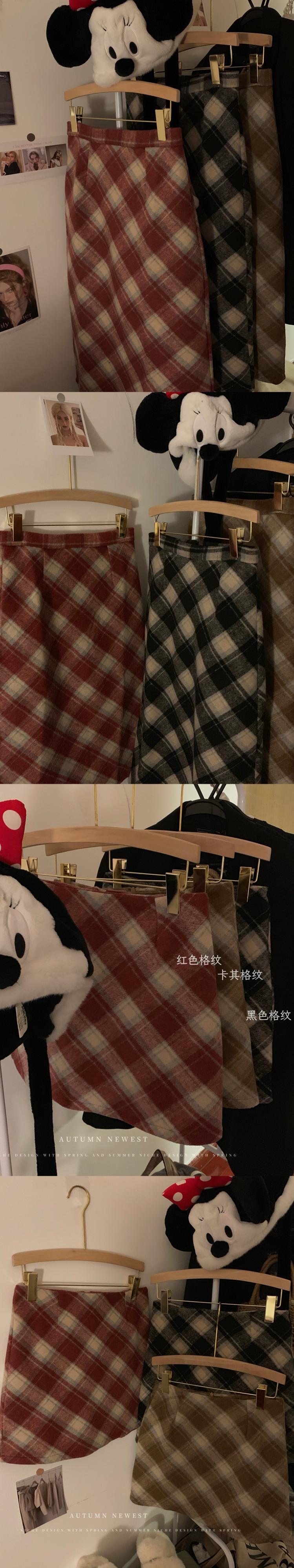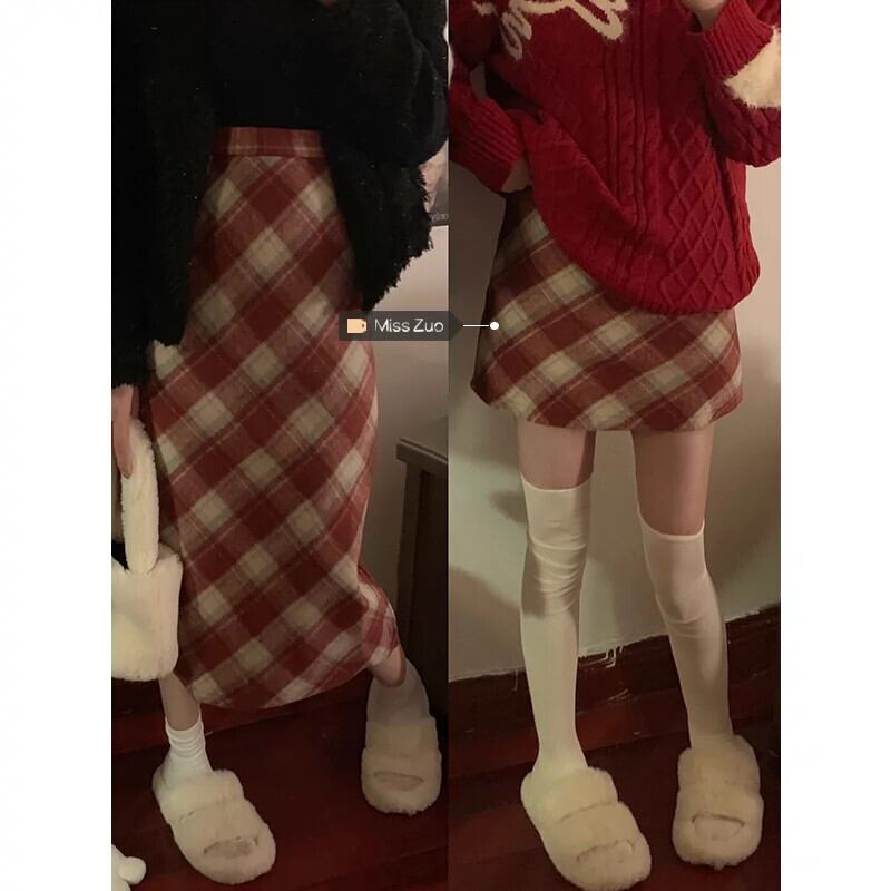 赤いチェック柄ウールスカートレディース、秋冬ハイウエストAラインスカート、今年最も人気のある限定版のヒップハグショートスカート レッド オータム 秋物 ウィンター 冬物 8571657003404719