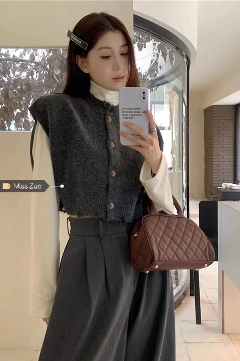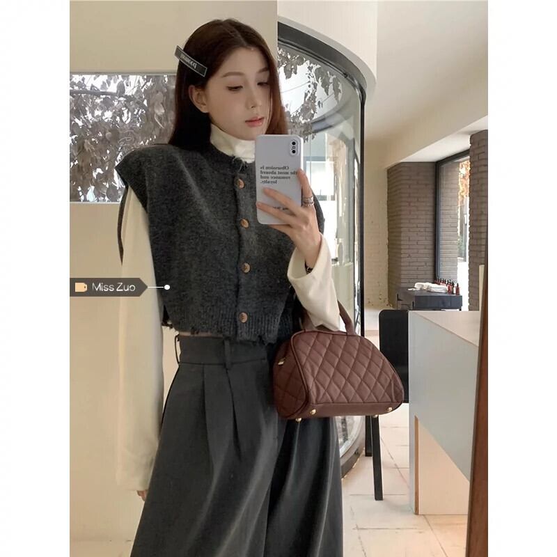 スタッキングベスト女性秋と冬のアウターニットチョッキ 2024 新スタイル eign スタイルファッショナブルなショートベスト小人 オータム 秋物 ウィンター 冬物 8571691920451959