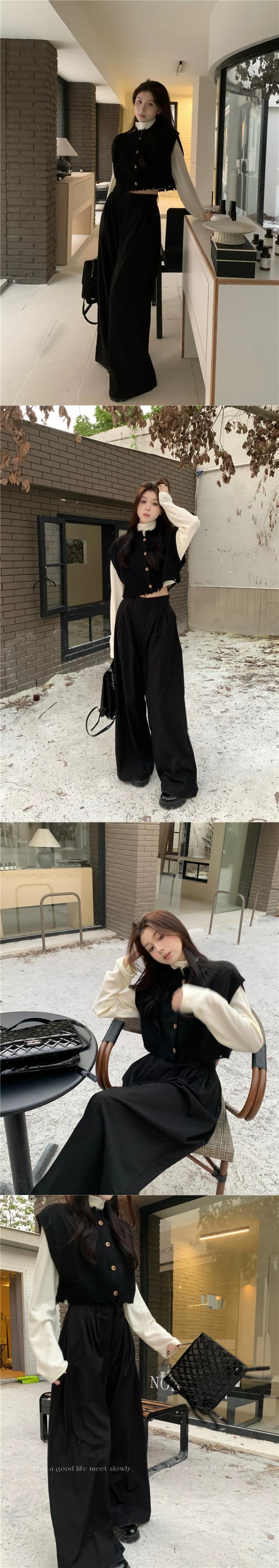 色:ホワイトボトミングシャツ,グレーのベスト,黒のベスト,黒いズボン,グレーパンツ