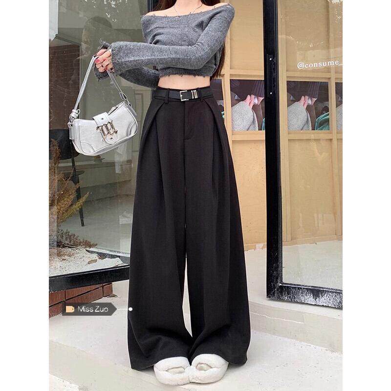 ウールスーツパンツの女性、秋と冬のハイエンドストレートワイドレッグパンツ2024新しいスタイルのハイウエストルーズカジュアルフロアレングスパンツ オータム 秋物 ウィンター 冬物 8571685575338994