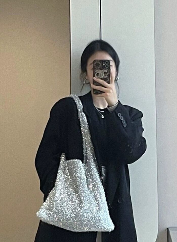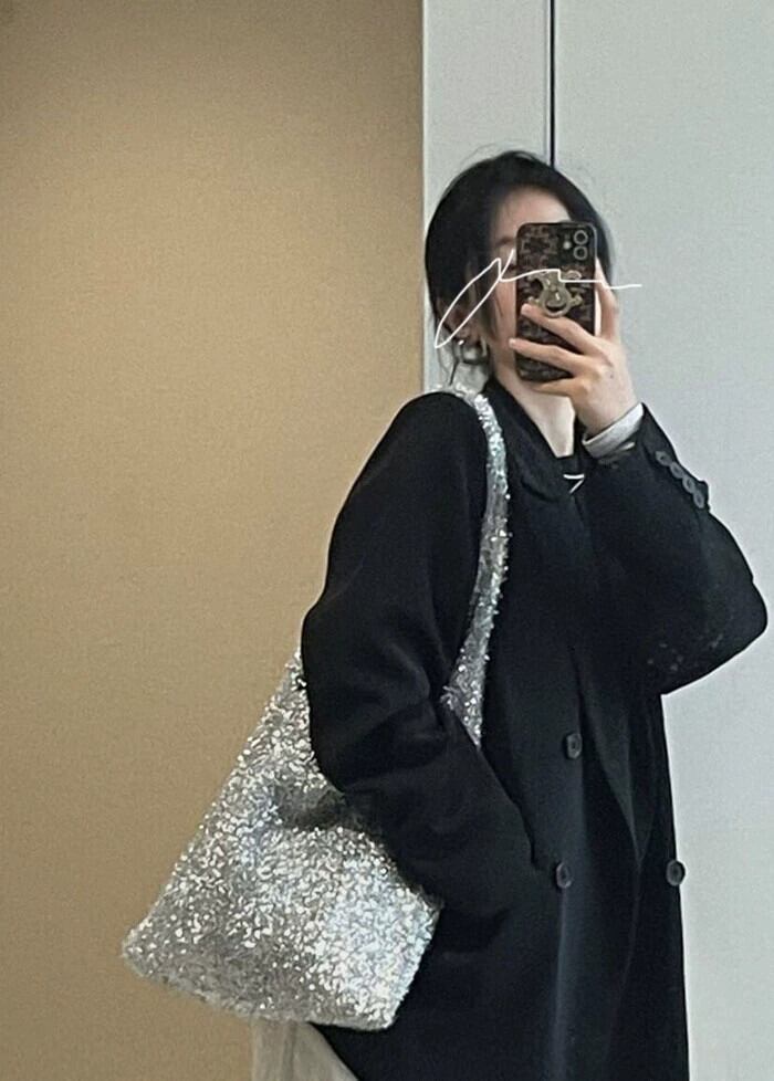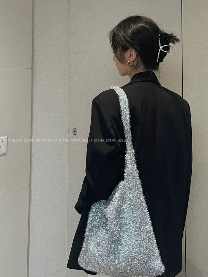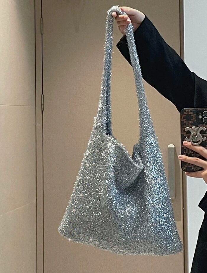 シルバーショルダーバッグ女性の秋と冬のクリスマス雰囲気大容量脇の下バッグニッチファッションシックなハンドバッグ オータム 秋物 ウィンター 冬物 銀 8571650005302129