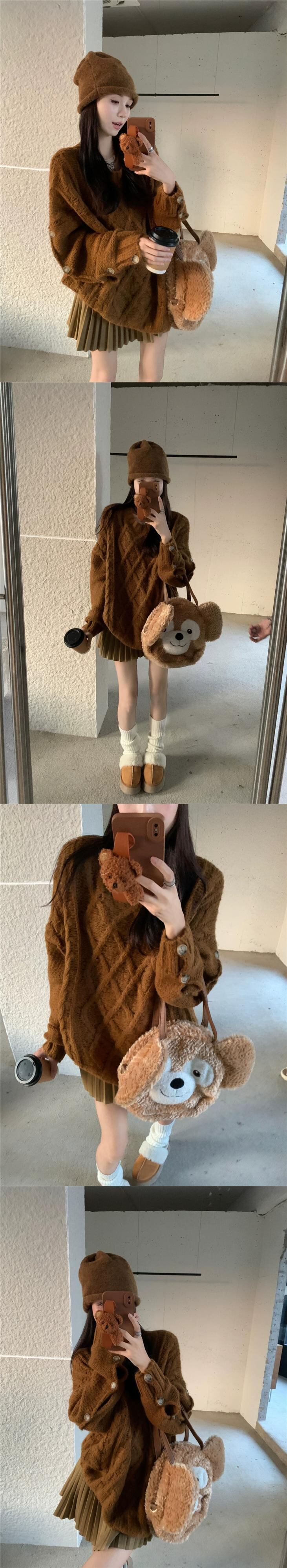 キャラメル ツイスト セーター レディース 2024 秋冬 メイラード ウェア ルーズ レイジー ニット セーター オータム 秋物 ウィンター 冬物 8571655967640560