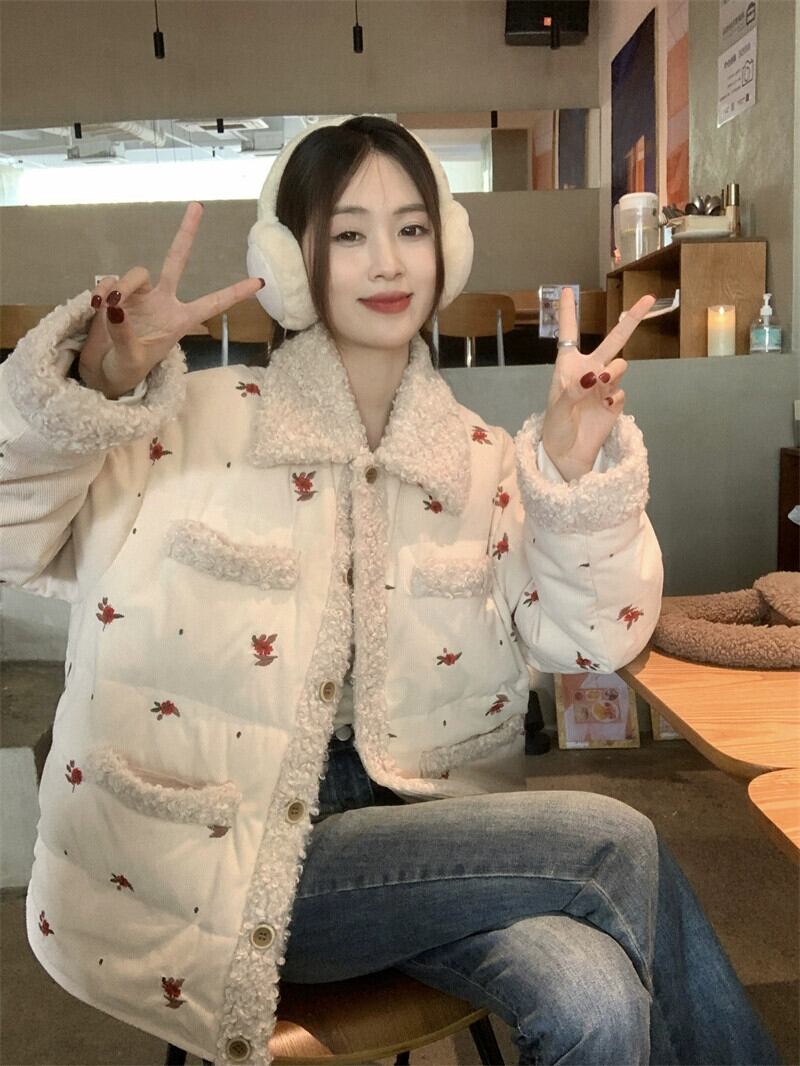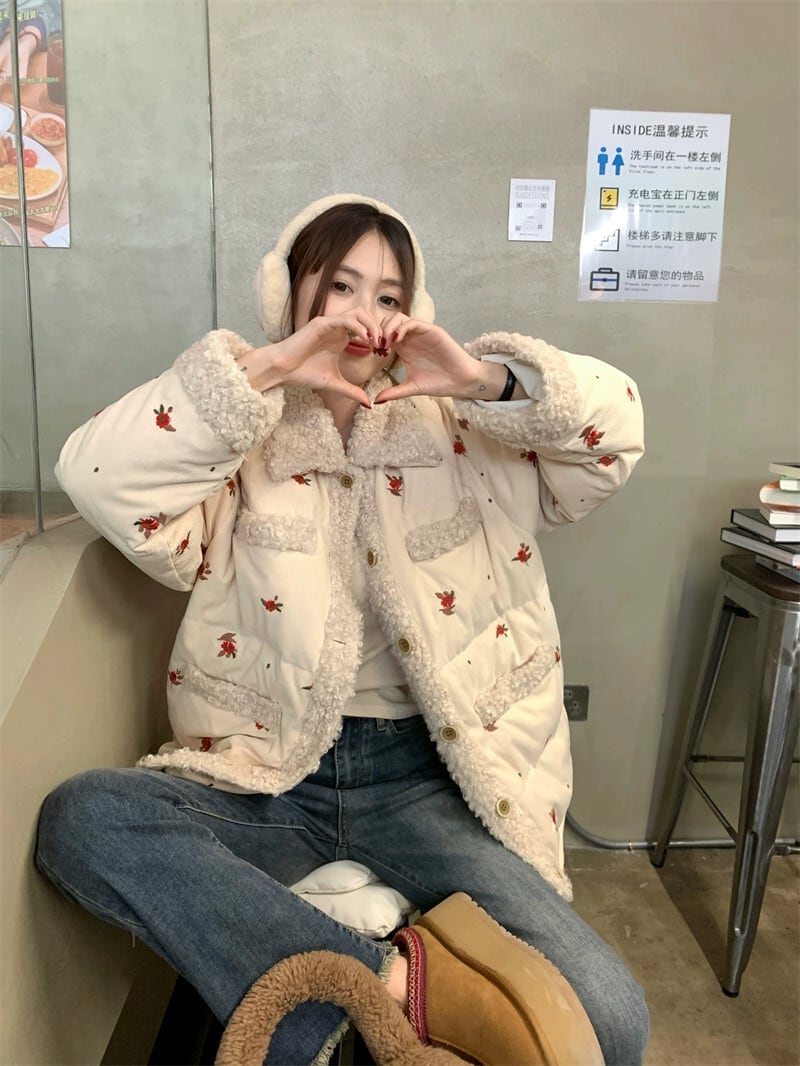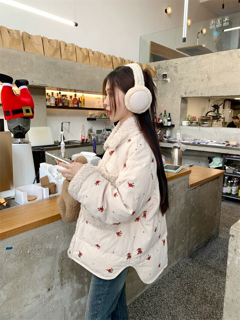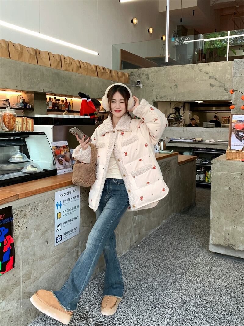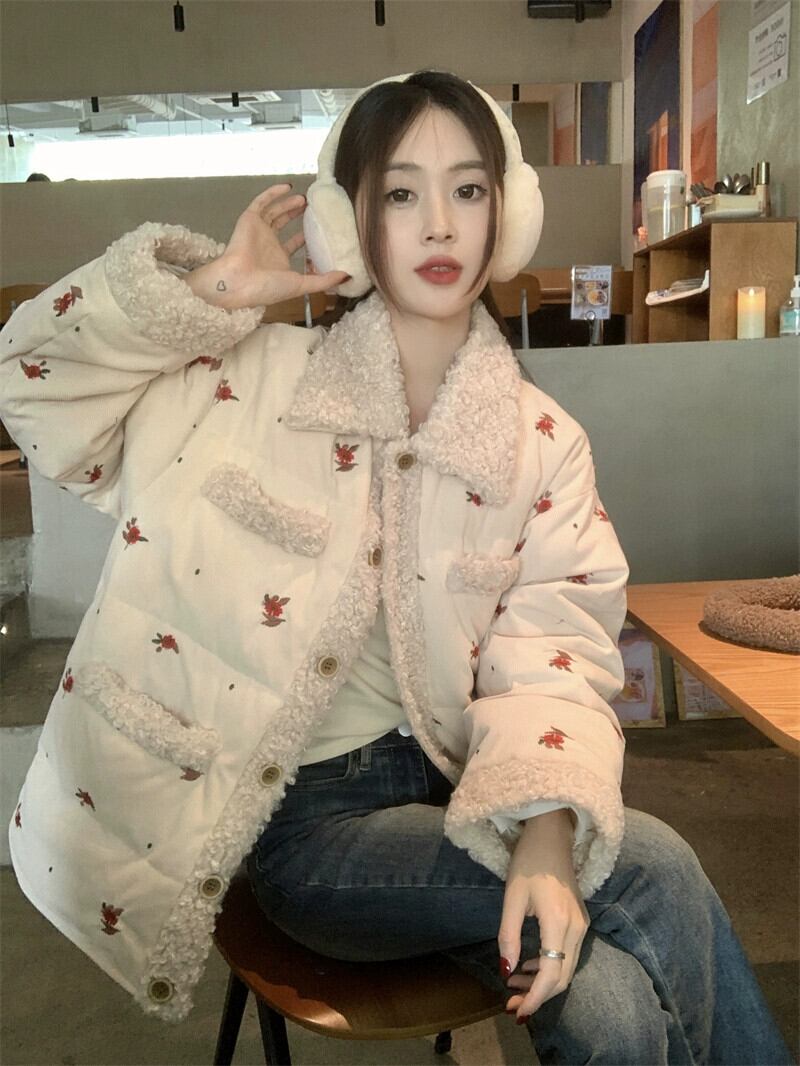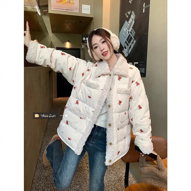 コーデュロイ刺繍入りコットンジャケットの女性、スタイルの冬服、花柄のコットンジャケット、とても素敵なデザイン。 レッド ウィンター 冬物 8571659527762613