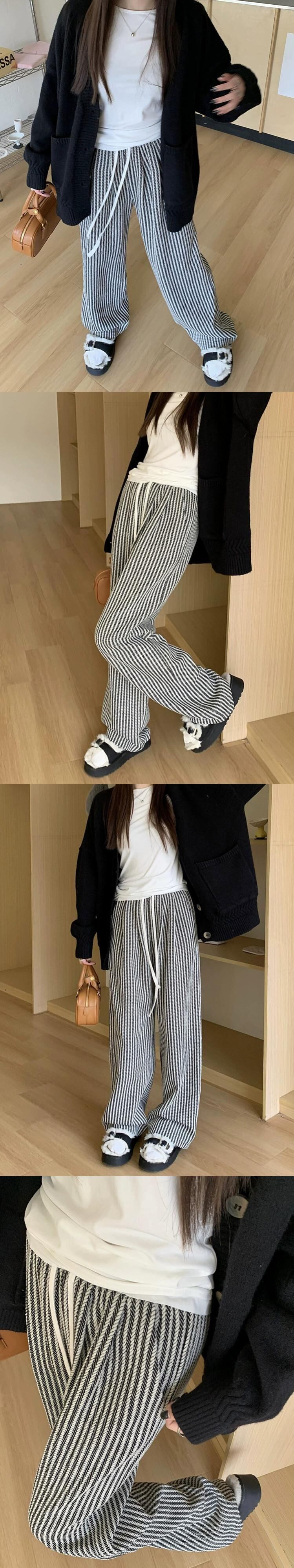 冬の縞模様のウールのワイドレッグパンツの女性プラスベルベットと厚みのある2024新しいレトロハイウエストルーズカジュアルフロアレングスパンツ ウィンター 冬物 ストライプ 8571642969219907