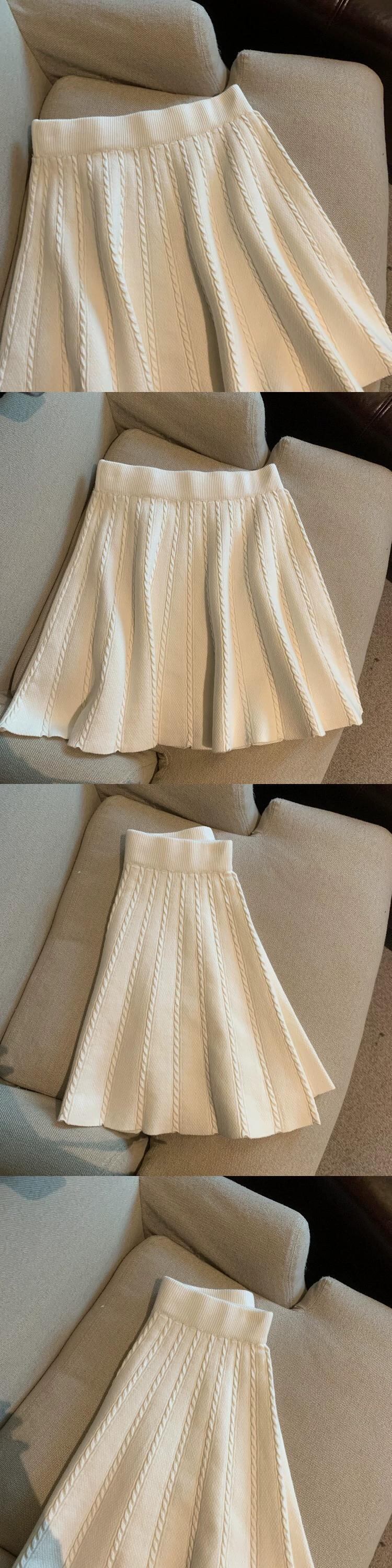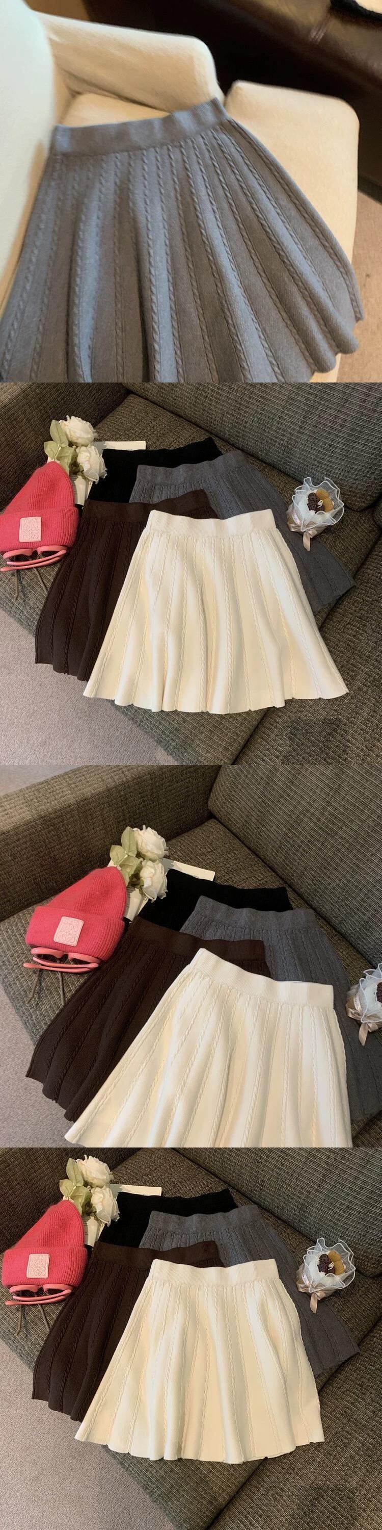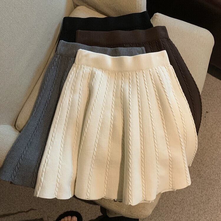 オフホワイトニットスカートレディース秋冬ハイウエストAラインスカート2024新作傘スカート股間をカバーし万能ショートスカート オータム 秋物 ウィンター 冬物 8571663944172764