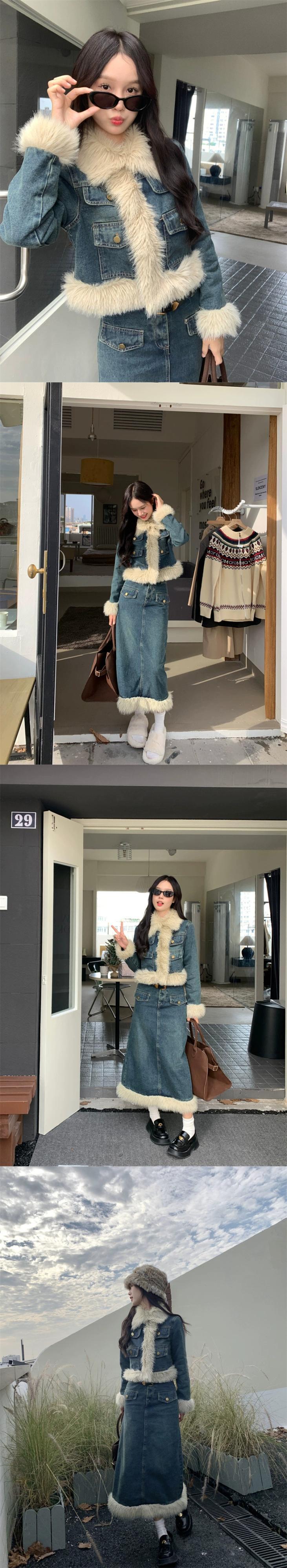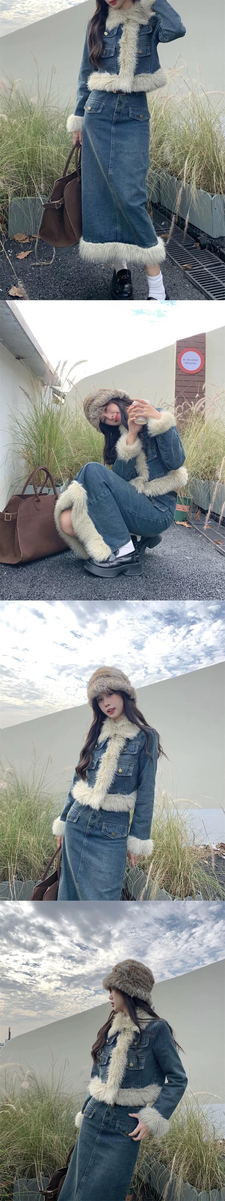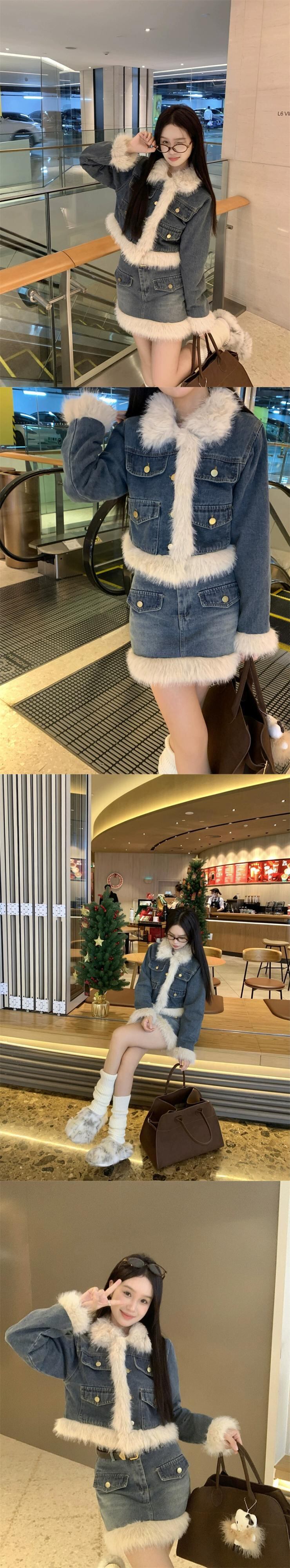 毛皮のようなステッチデニムジャケットの女性の冬 2024 新しいスタイル今年の人気の美しいレトロなハイエンドショートトップ ウィンター 冬物 8571660067472227