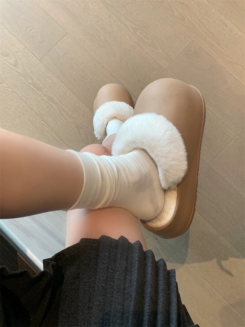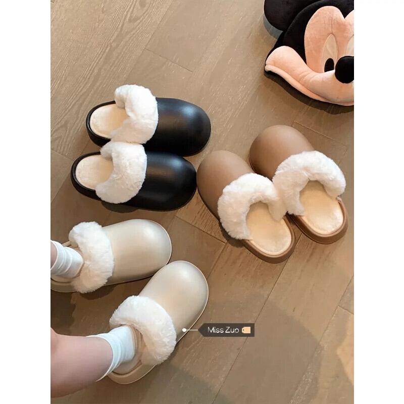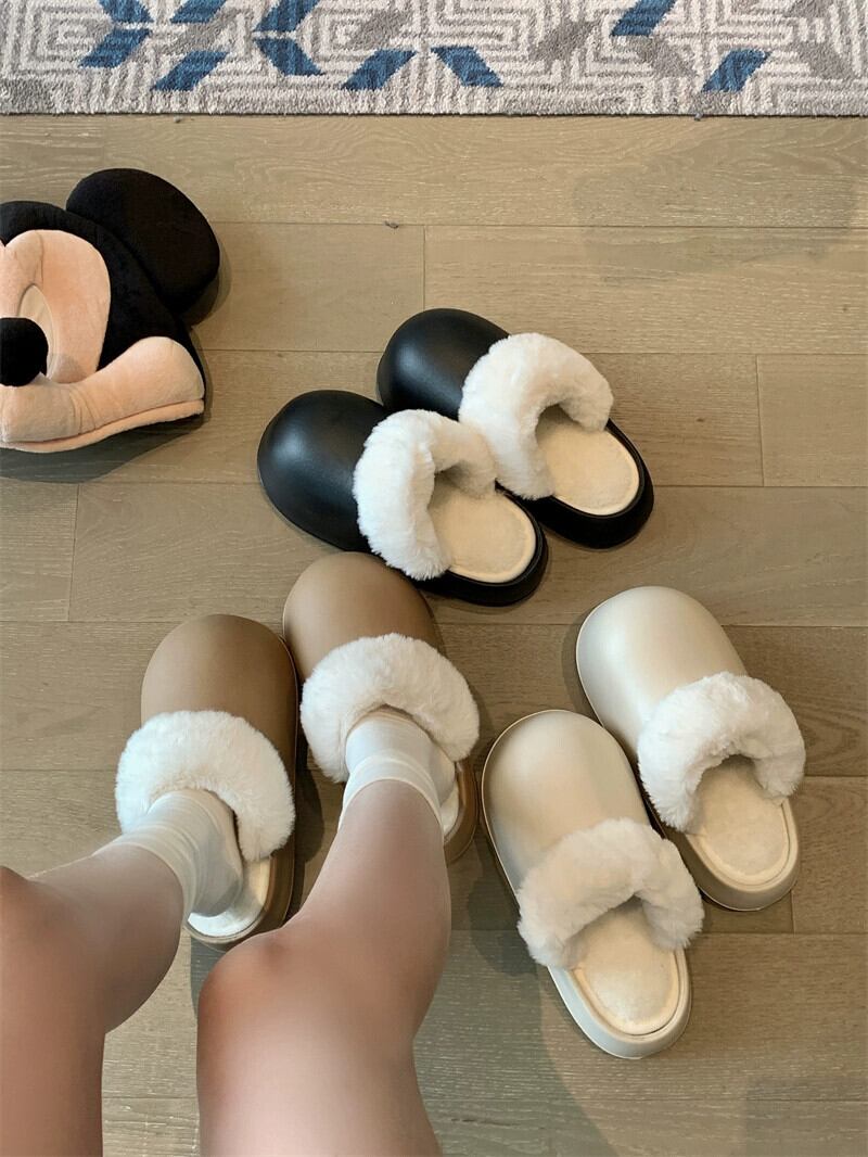 包頭綿スリッパ女性 2024 冬の新しい暖かい厚底屋内および家庭用ウェアラブル防水怠惰な毛皮のようなスリッパ コットン ミュール 靴 シューズ ウィンター 冬物 8571655694546874