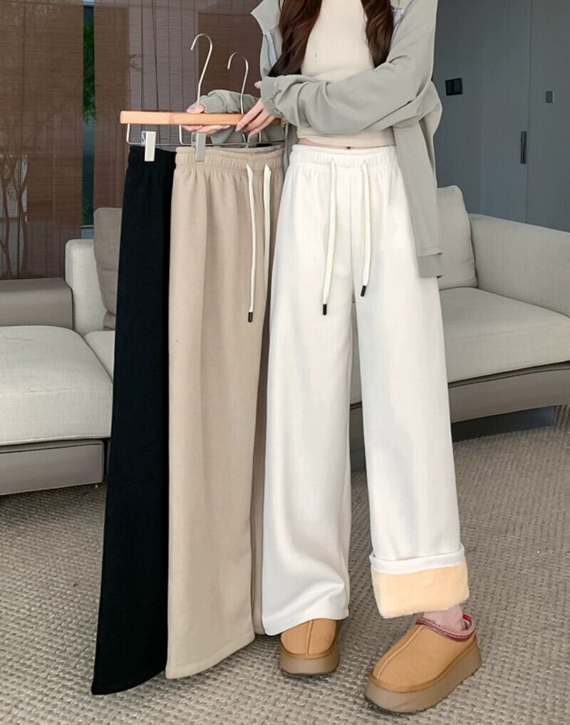 女性のベルベットカジュアルパンツ冬 2024 新しいハイウエスト痩身肥厚ワイドレッグパンツ巾着ドレープ床長ズボン ウィンター 冬物 8571614399057356