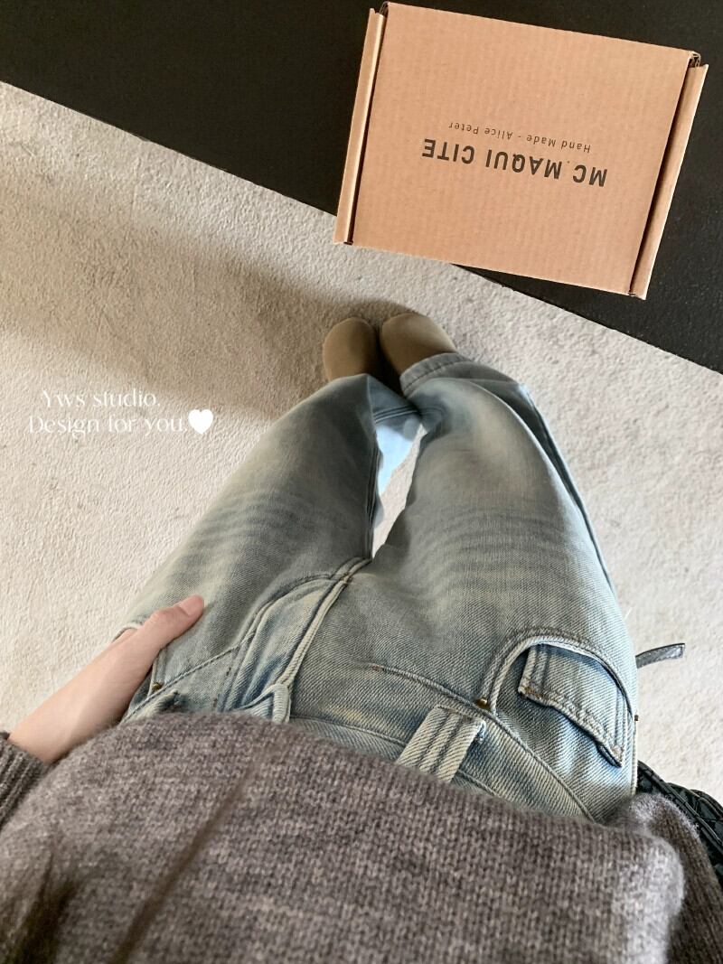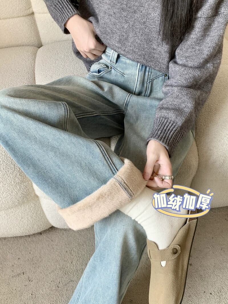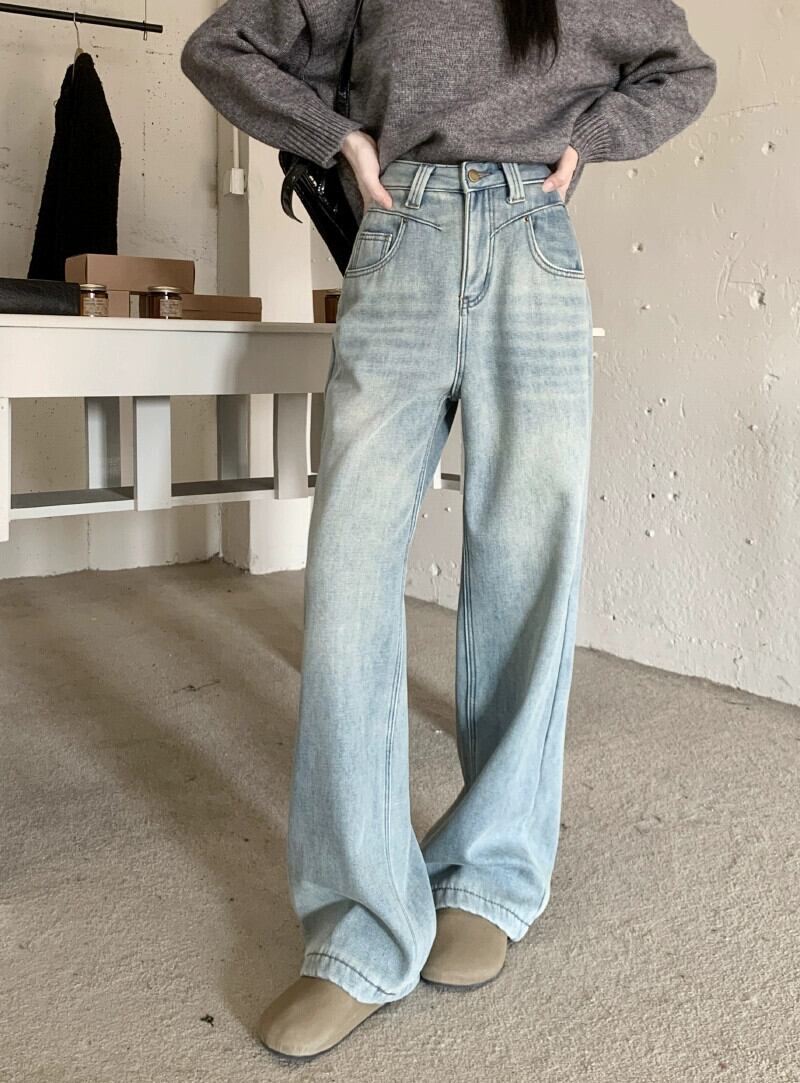 アメリカンベルベット肥厚ハイウエストデニムワイドレッグパンツ女性2024秋冬新バージョンハイウエストフロアレングスストレートパンツ オータム 秋物 ウィンター 冬物 8571616381251934