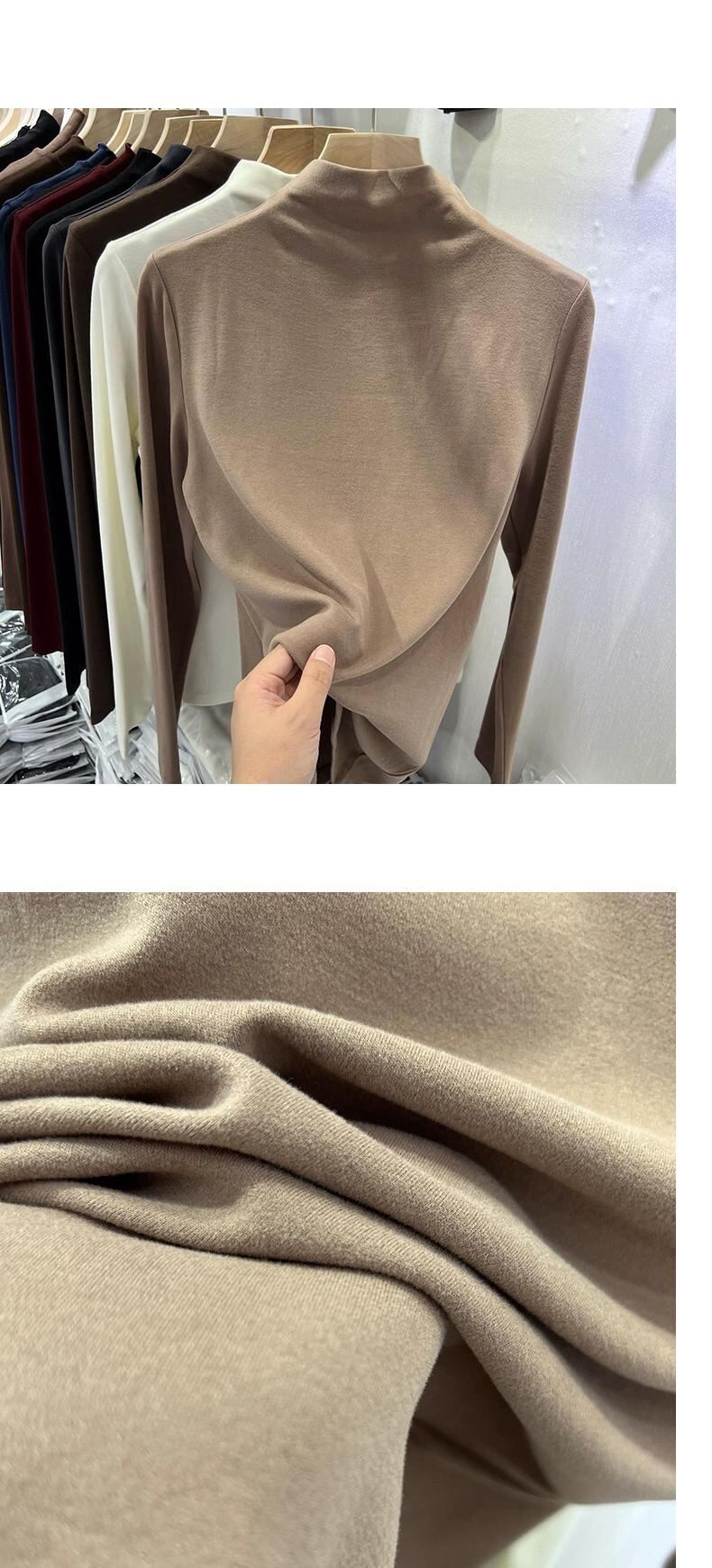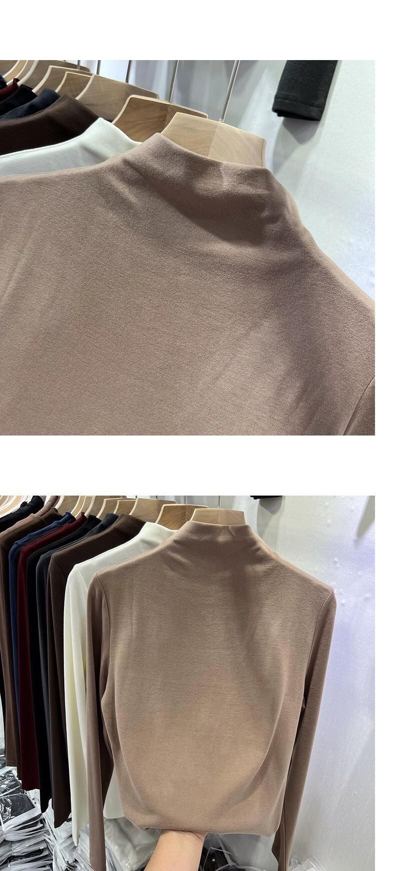 ドイツ製ベルベットハーフタートルネックボトミングシャツレディーストレンディな2024秋冬スタイルインナーフィットスリムミッドカラープラスベルベット起毛トップ オータム 秋物 ウィンター 冬物 8571697794556385