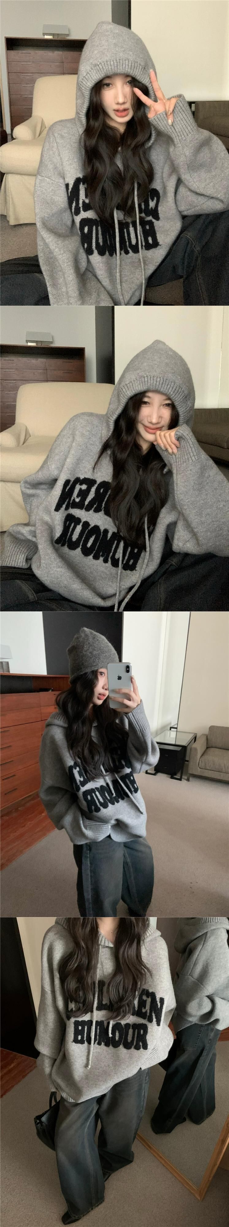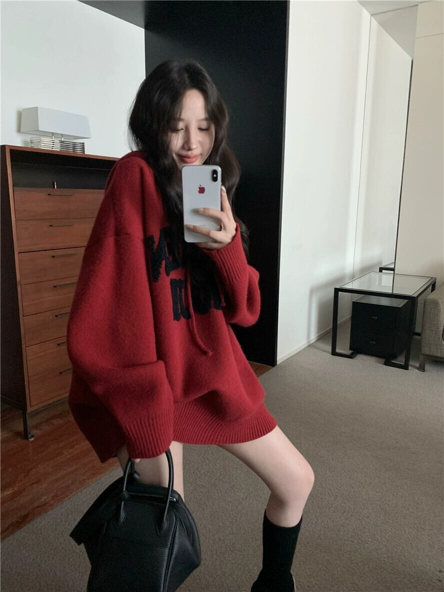 アメリカンレトロなフード付きスウェットシャツの女性の秋と冬2024新しい長袖ルーズ刺繍フード付きカジュアルプルオーバートップ ロング レッド オータム 秋物 ウィンター 冬物 8571623846102458