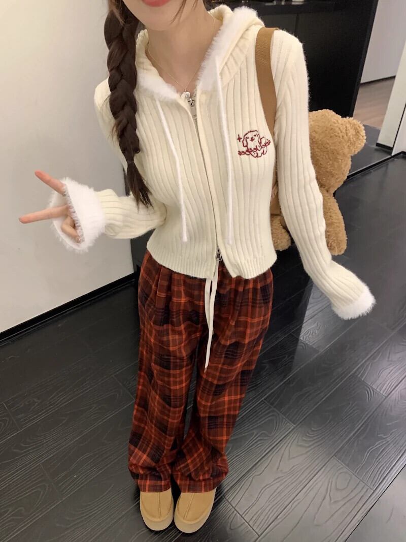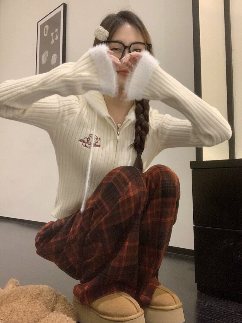 ダブルジッパーフード付きセーター女性秋 2024 新しいスタイルのデザインエレガントな女性のセータートップトレンディな オータム 秋物 8571662349824573