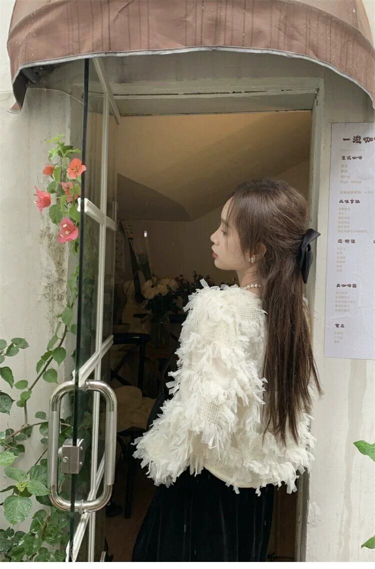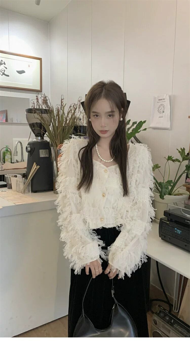 オフホワイト長袖シャツ女性の2024年秋の新スタイルフランスの優しい気質デザインのスーパーフェアリーショートトップ ロング オータム 秋物 8571689330780307