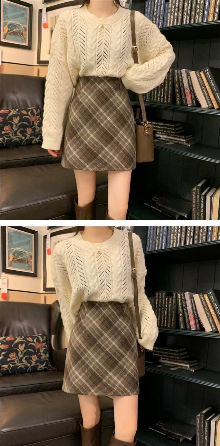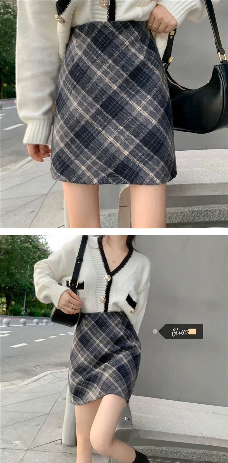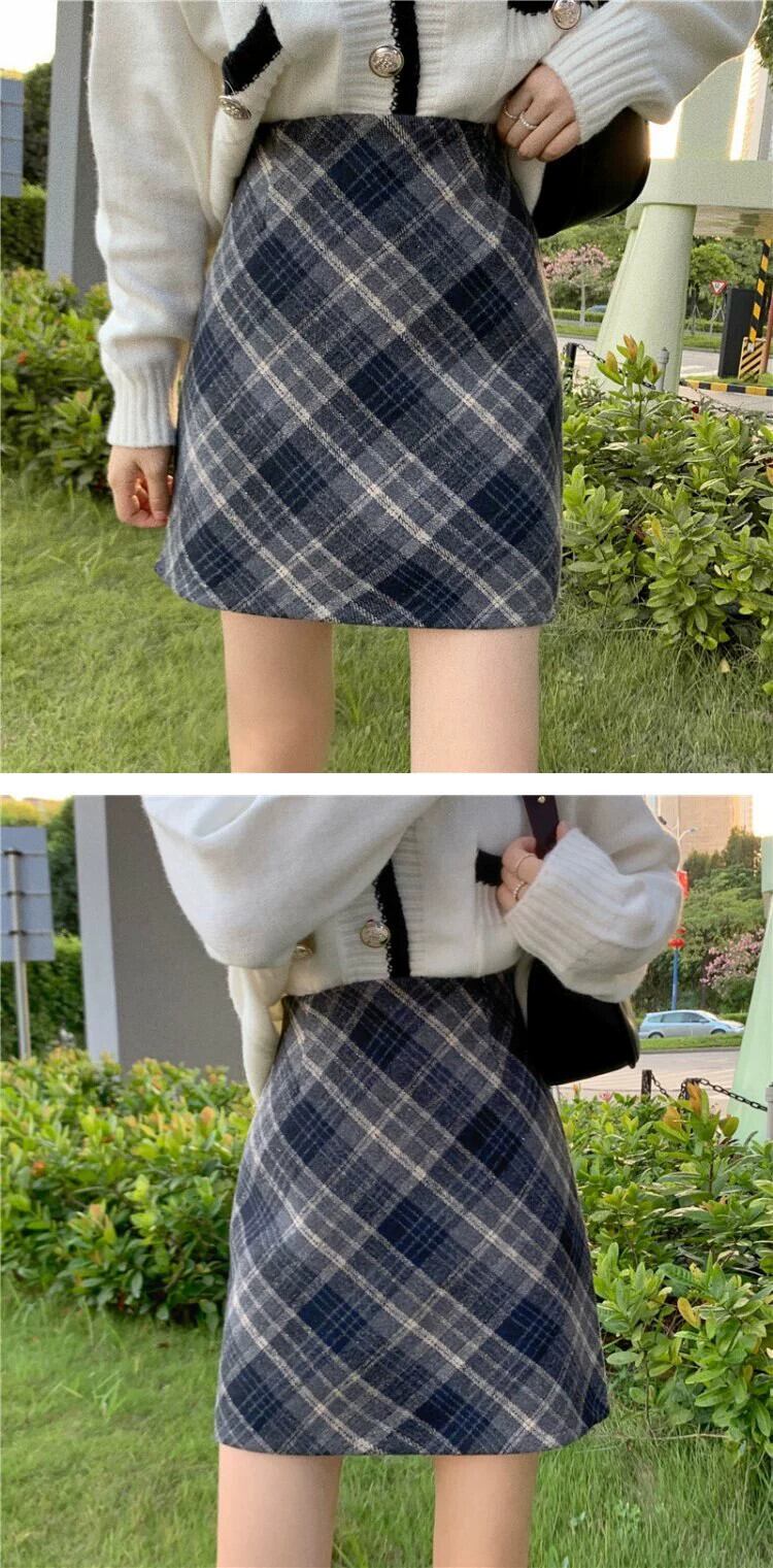 チェック柄ウールスカート女性のデザインニッチ秋と冬のハイウエストヒップAラインスカート2024新しい気質スカート ハイウェスト オータム 秋物 ウィンター 冬物 857168577060320