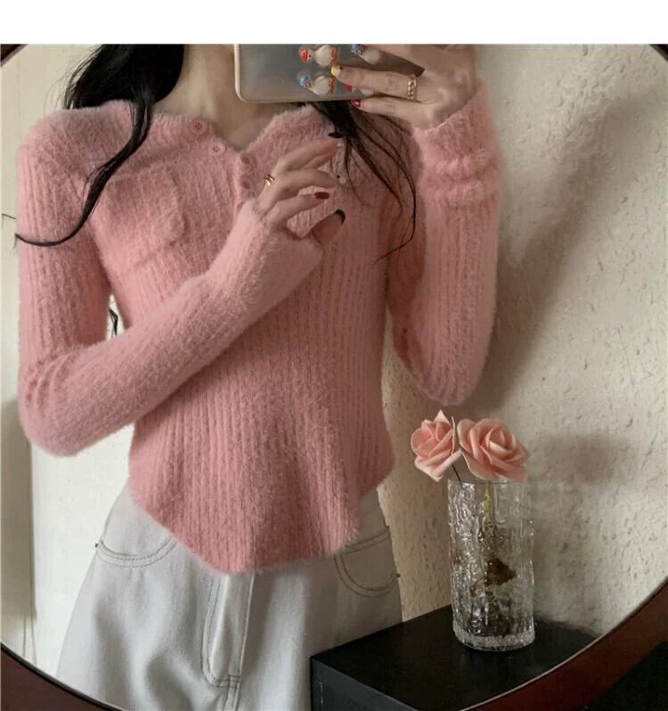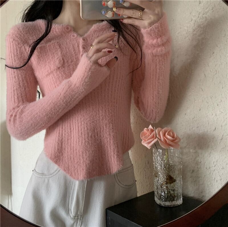 模造ミンクベルベット底セーター女性秋と冬 2024 新しいインターネット有名人人気のセータースリムショートトップ オータム 秋物 ウィンター 冬物 8571677063782870