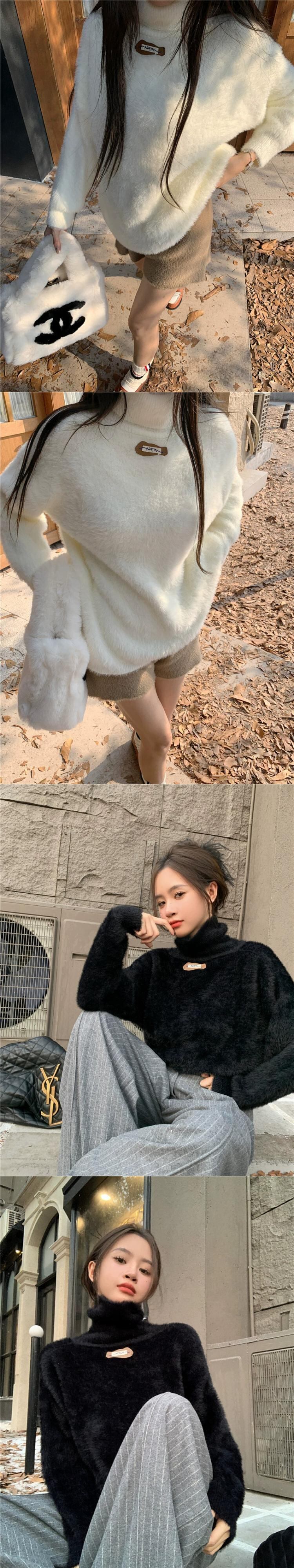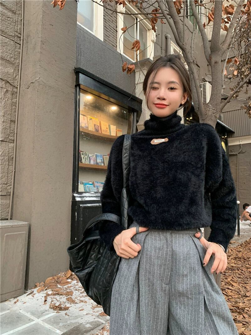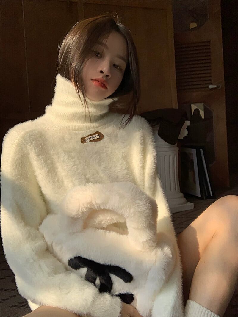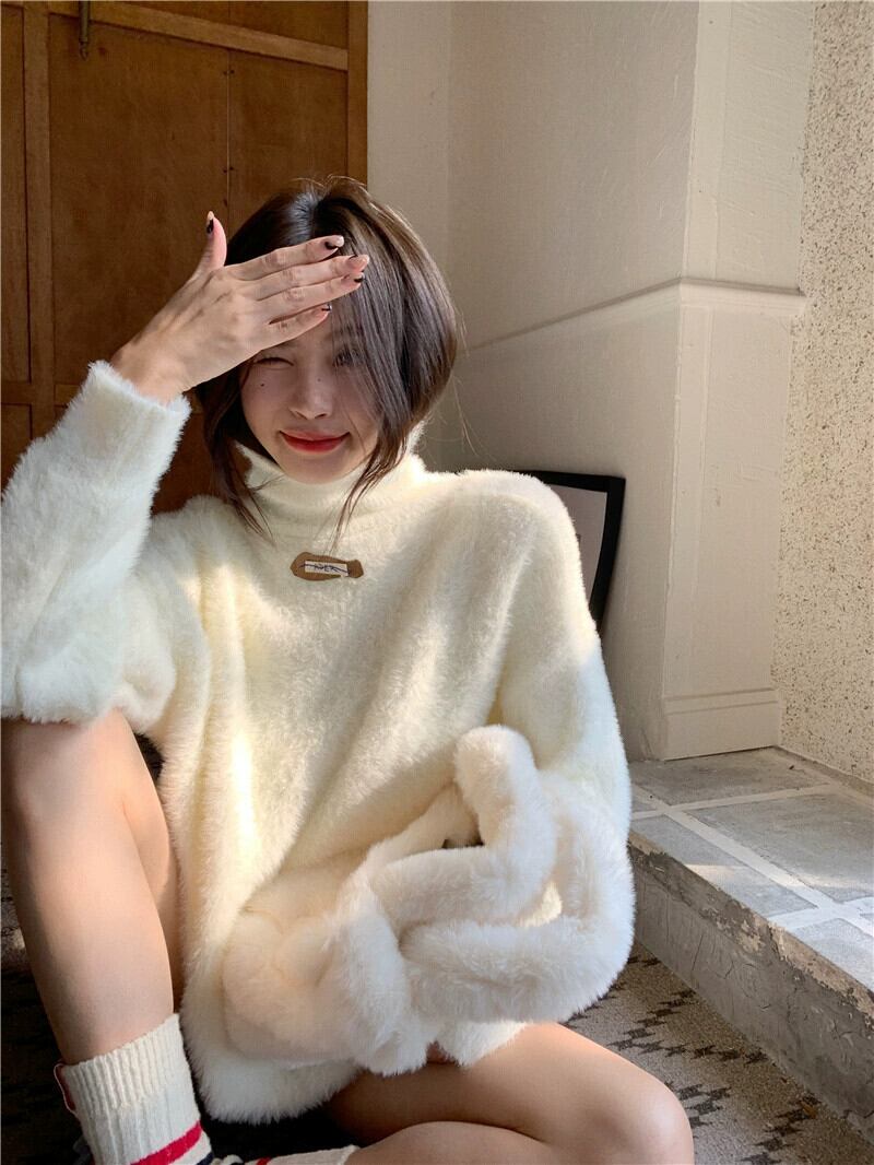 タートルネックセーター女性冬肥厚 2024 新デザインニッチルーズシックな怠惰な模造ミンクベルベットトップ ウィンター 冬物 8571639210162982