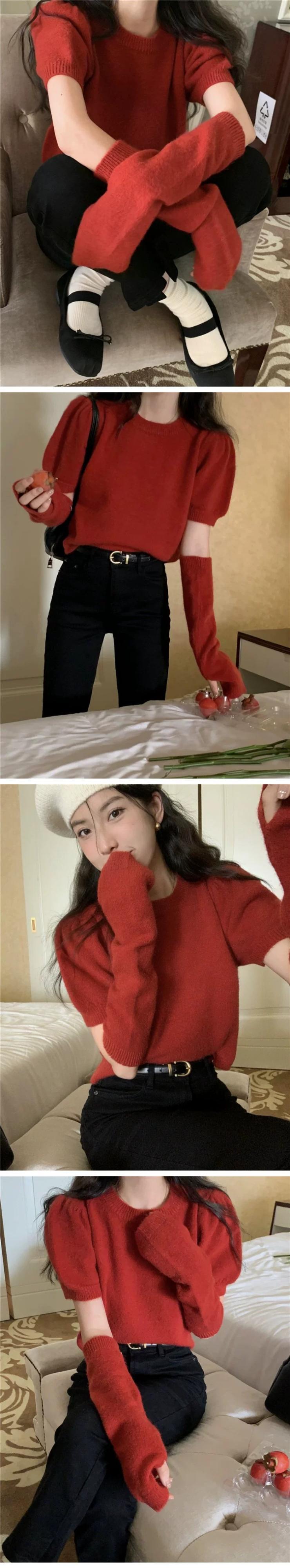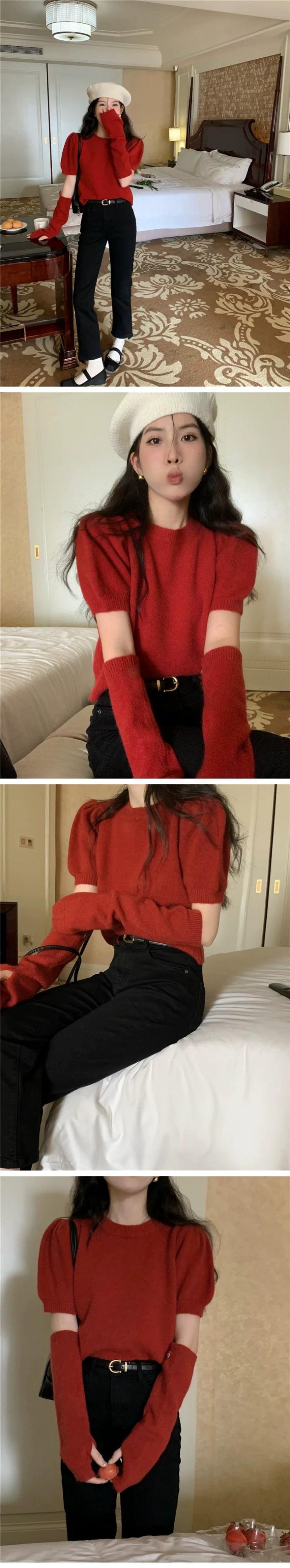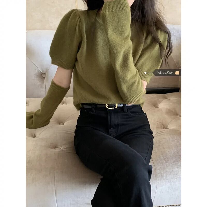 ラビットファーニットセーター女性秋シーズン 2024 新しいスタイルニッチデザイン袖アメリカンスタイルトップ オータム 秋物 8571681826781668