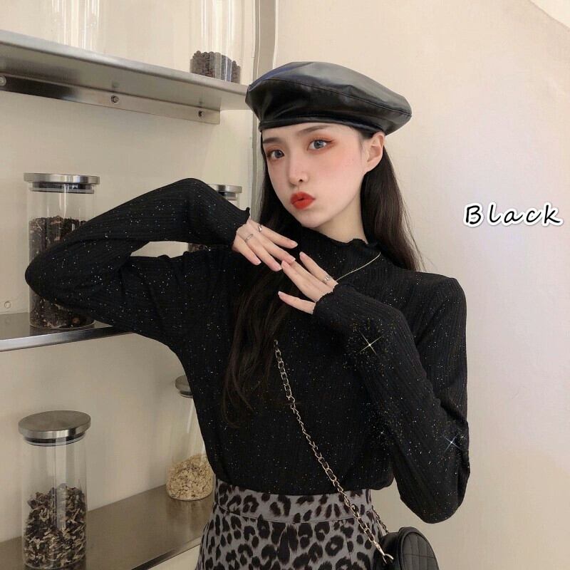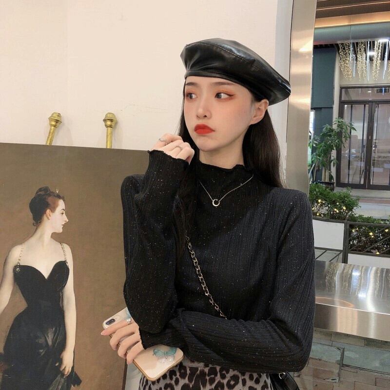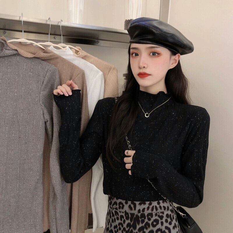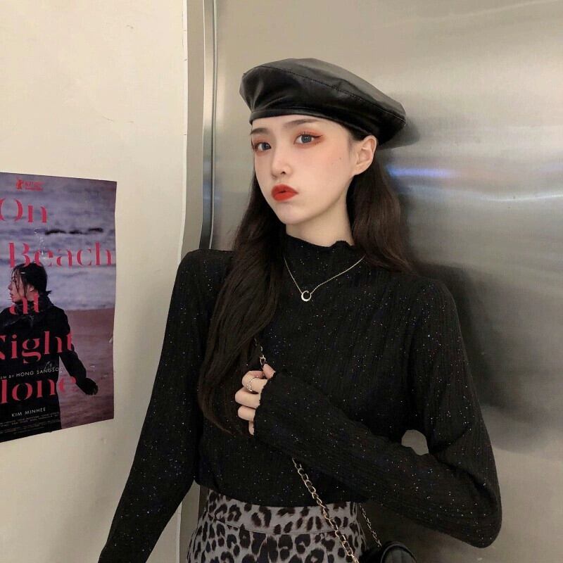 黒ハーフタートルネックニットボトムシャツ女性秋冬 2024 新しいスタイルのユニークでユニークなデザインニッチインナートップ ブラック オータム 秋物 ウィンター 冬物 8571649100700969