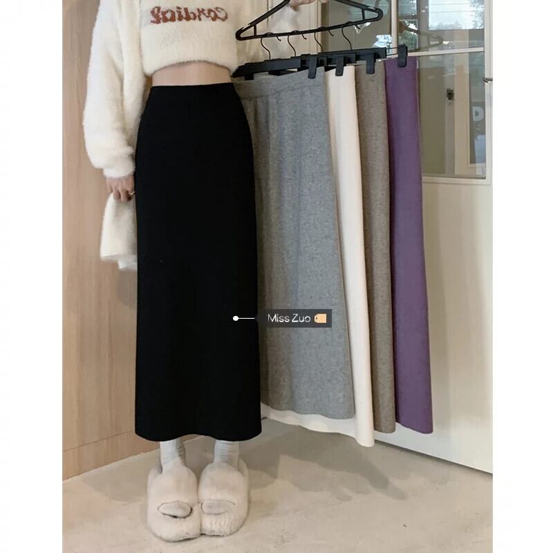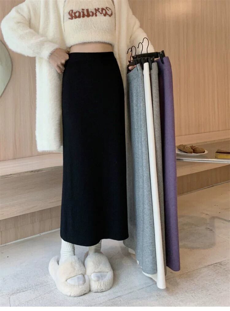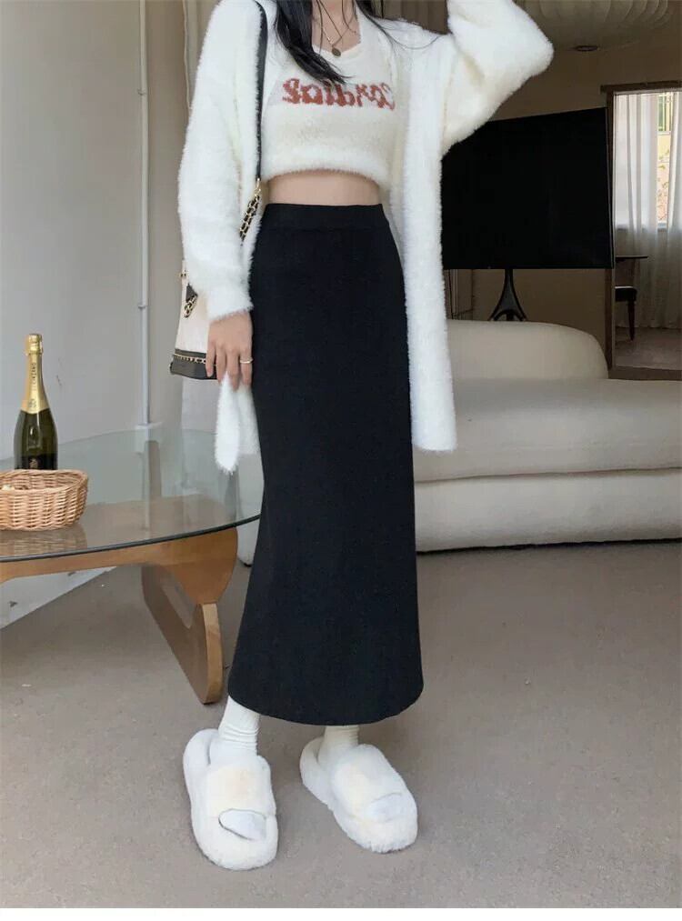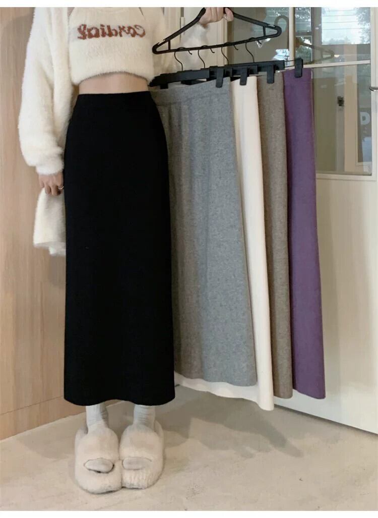 黒ニットスカート女性の秋のストレートヒップハグスカート 2024 新しいハイウエスト A ラインスカートロングスカート小人 ブラック オータム 秋物 Aライン 8571618318407123