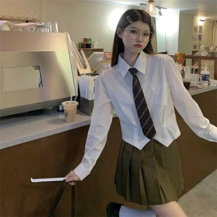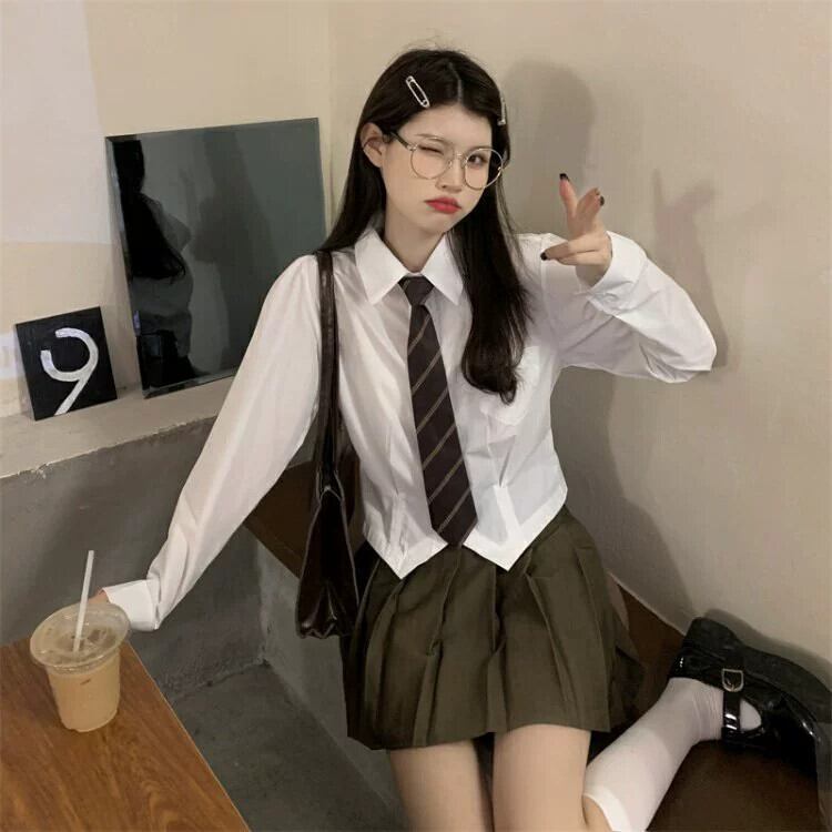 白インナーボトムJKシャツレディースデザインニッチシャツ甘い初秋長袖ショートトップ ロング ホワイト 大人ガーリー スウィート キュート カジュアル オータム 秋物 8571650517014358