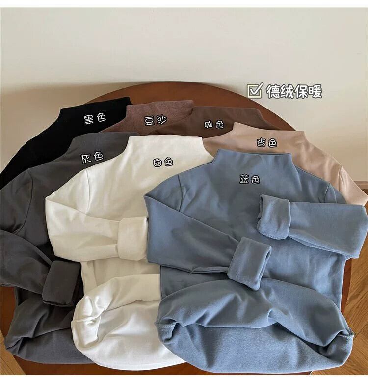 ハーフタートルネックドイツベルベット底シャツ女性、秋と冬暖かいインナー秋服トップ 2024 新しいブルー長袖 Tシャツ ロング オータム 秋物 ウィンター 冬物 8571675781552463
