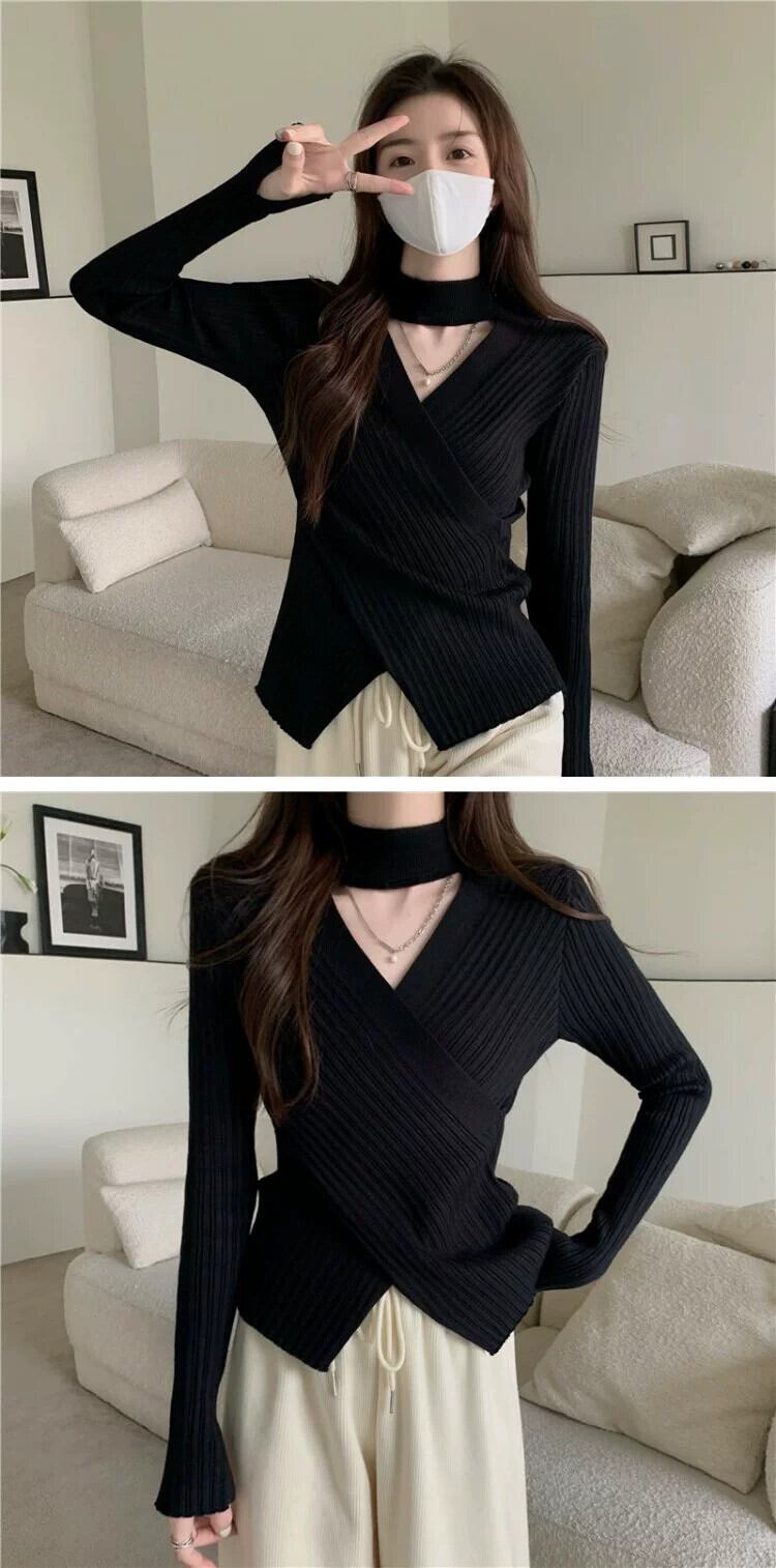 ホルターネックセーターレディース、秋のインナーレイヤリングセーターデザイン、ニッチでユニークでシックなスリットトップ オータム 秋物 8571681899035329