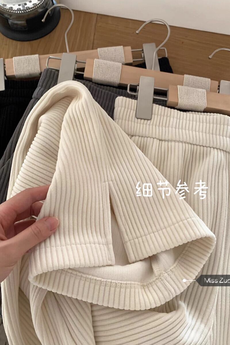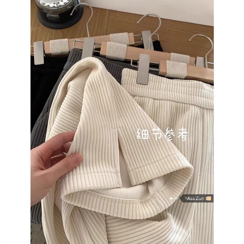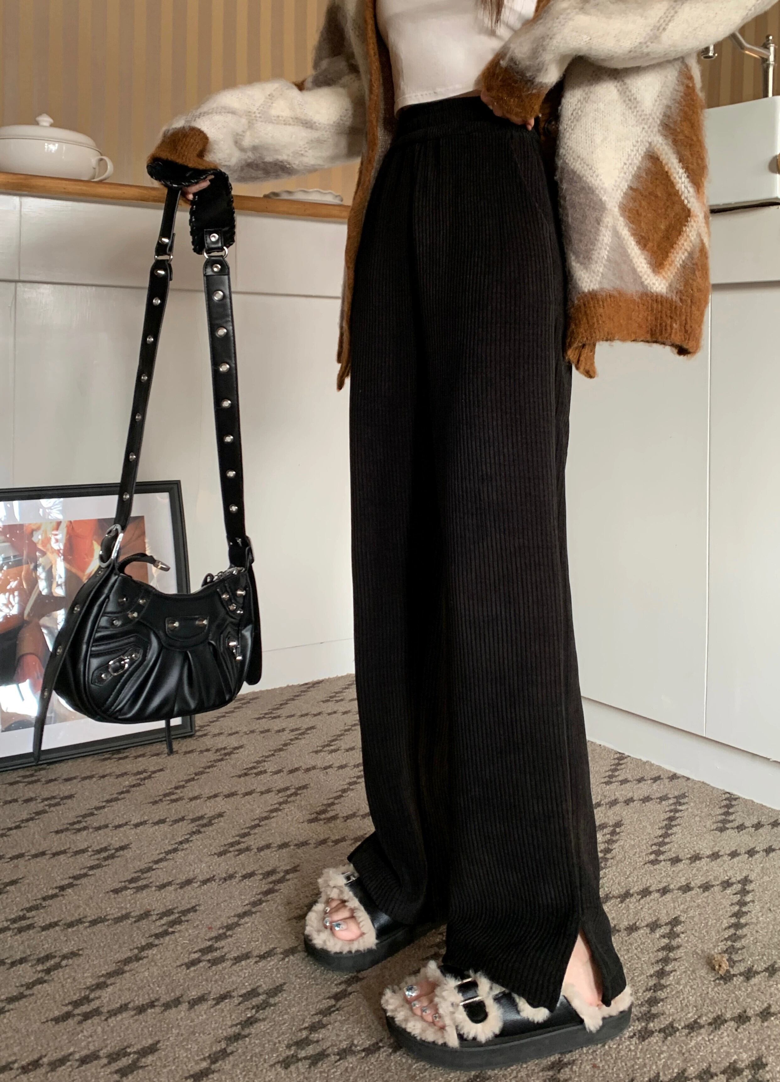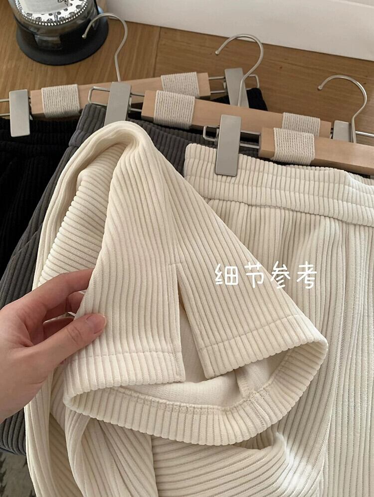 シェニールワイドレッグパンツの女性の秋と冬のベルベット肥厚カジュアルパンツ 2024 新しいハイウエストストレートレッグスリットフロアレングスパンツ オータム 秋物 ウィンター 冬物 857169985165537