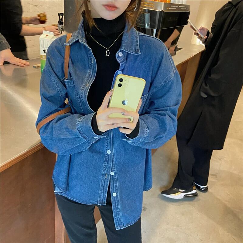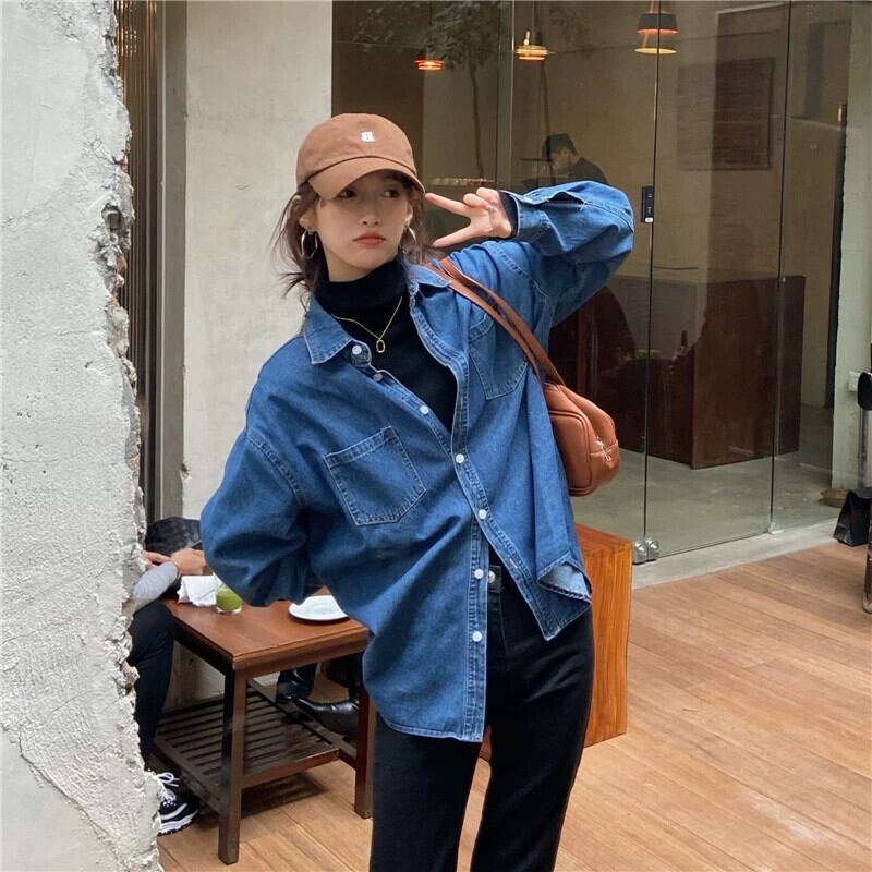 デニムシャツジャケット女性のデザインニッチスタッキングシャツ 2024 秋の新香港スタイルボトリング長袖トップ ロング オータム 秋物 8571682786778142