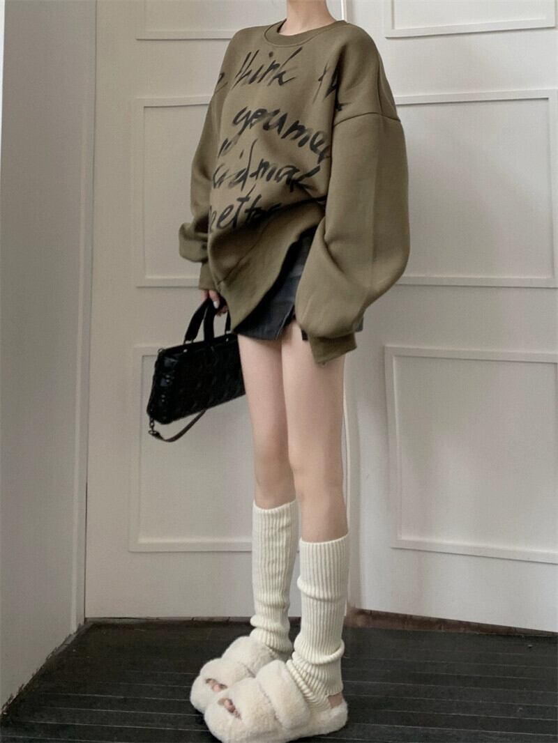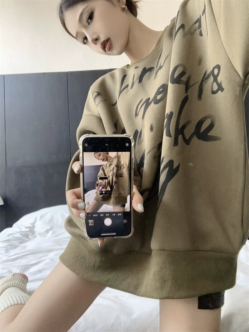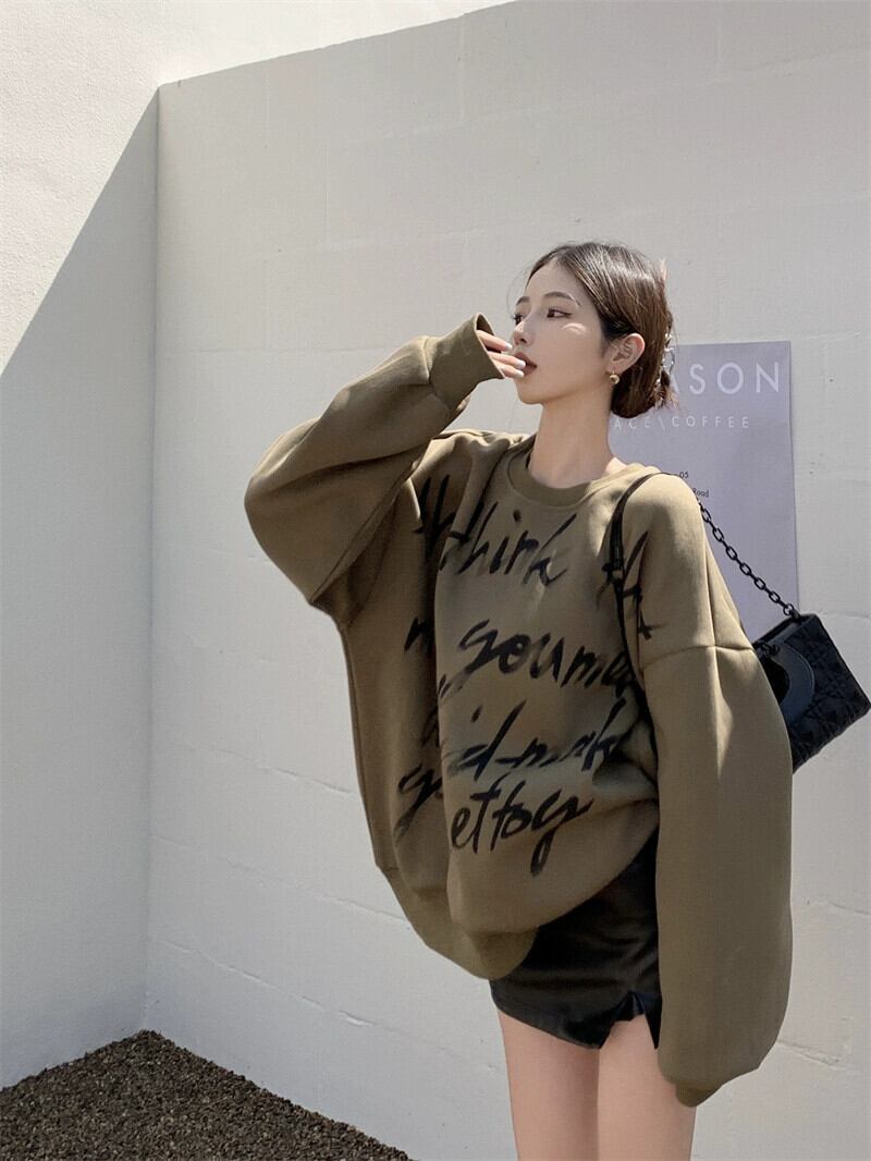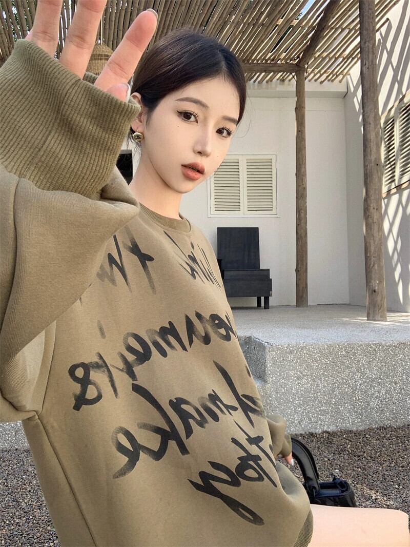 前面と背面の文字プリントのスウェットシャツの女性の 2024 年秋の新しいスタイルのアメリカン レトロなルーズな怠惰なスタイルの長袖トップ トレンディです。 ロング オータム 秋物 8571679452593472