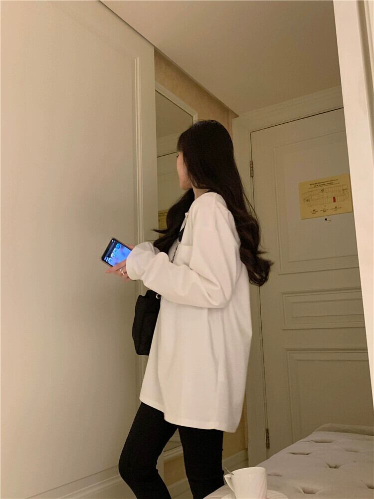 白い長袖Tシャツレディース秋冬インナーレイヤリングシャツ2024新作ルーズミドル丈ボトムストップ欠品 ロング ホワイト オータム 秋物 ウィンター 冬物 8571666883521186
