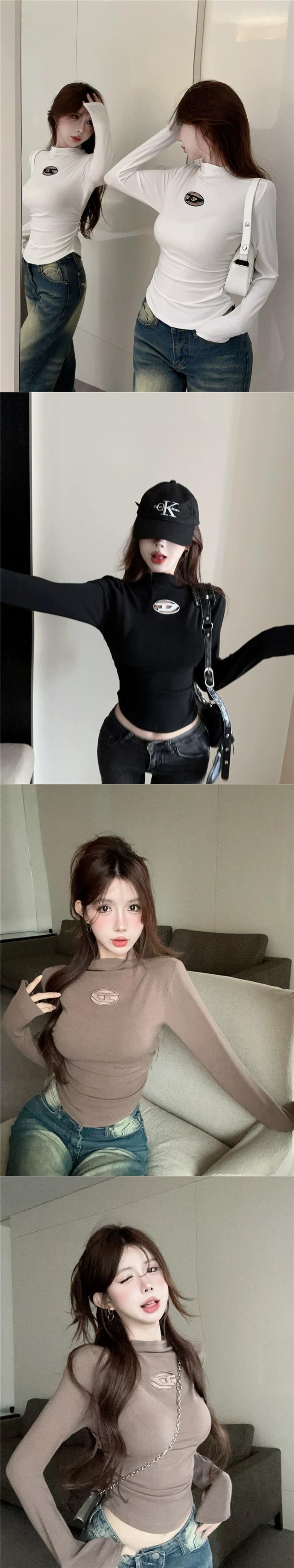 ハーフタートルネックインナーレイヤードシャツレディース、秋モカカラー長袖Tシャツ、甘くてクールでシックな体型見せトップス ロング レッド 大人ガーリー スウィート キュート カジュアル オータム 秋物 857165619951094