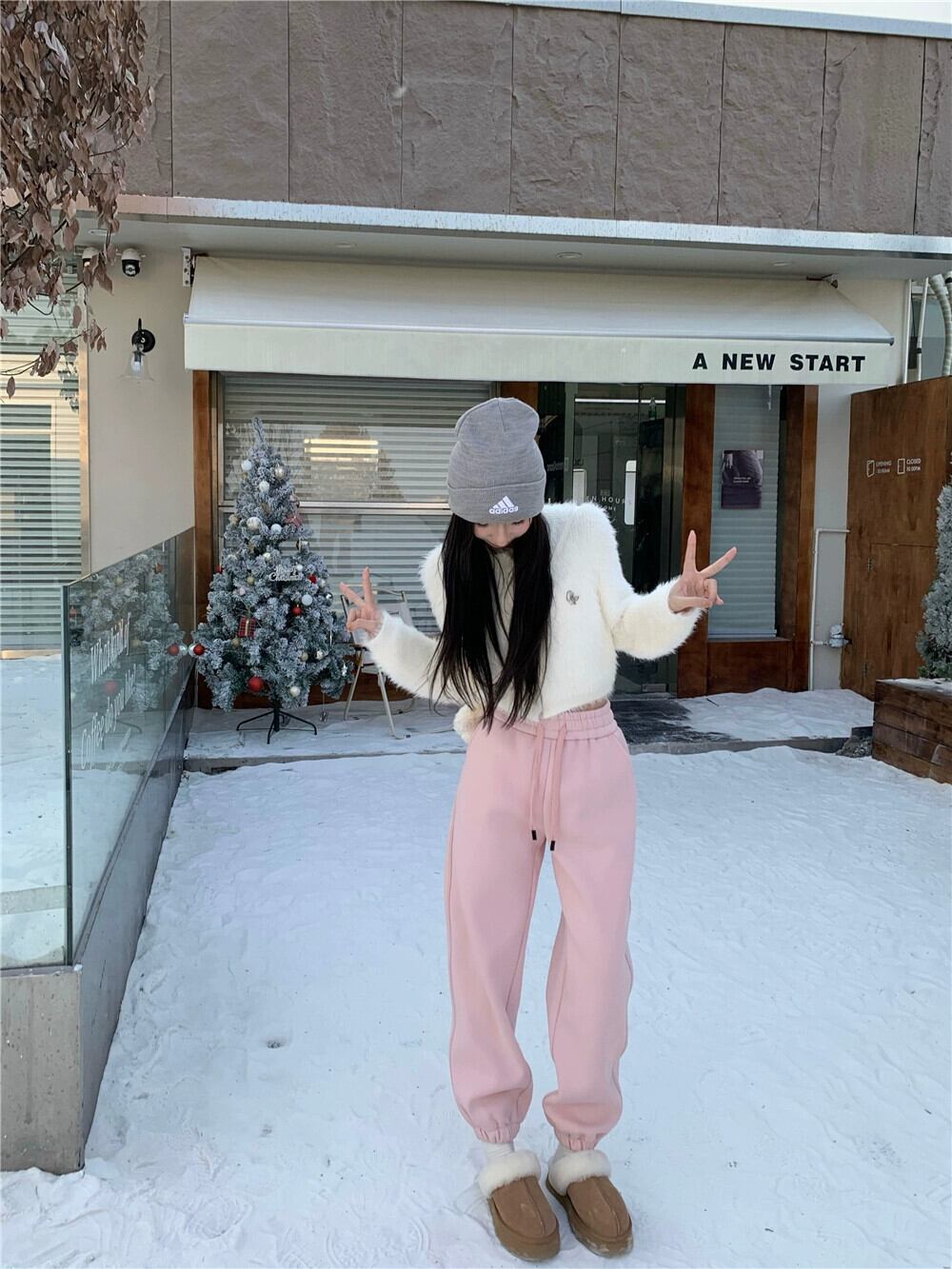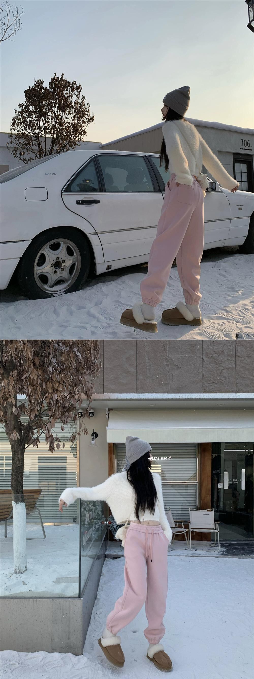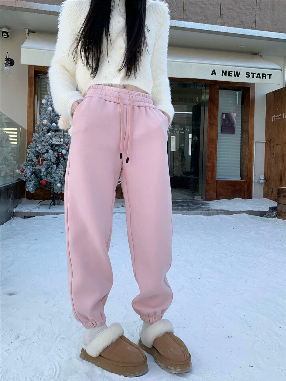 ピンクのスウェットパンツの女性の冬のベルベット肥厚レギンススウェットパンツ 2024 新しいハイウエストルーズカジュアルハーレムパンツ ウィンター 冬物 8571686779527965
