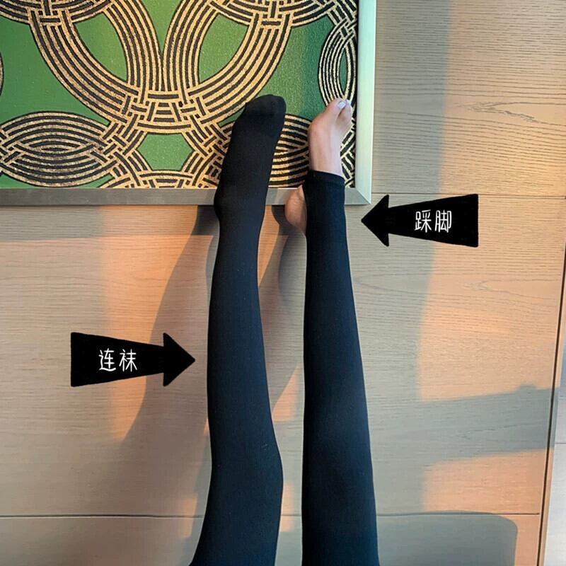 黒のレギンス女性の秋と冬のアウターウェア、ベルベットと厚みのある暖かいレギンス、ハイウエスト、タイトフィット、スリミング弾性ストッキング ブラック エラスティック 伸縮 オータム 秋物 ウィンター 冬物 タイツ ソックス 8571651001549739