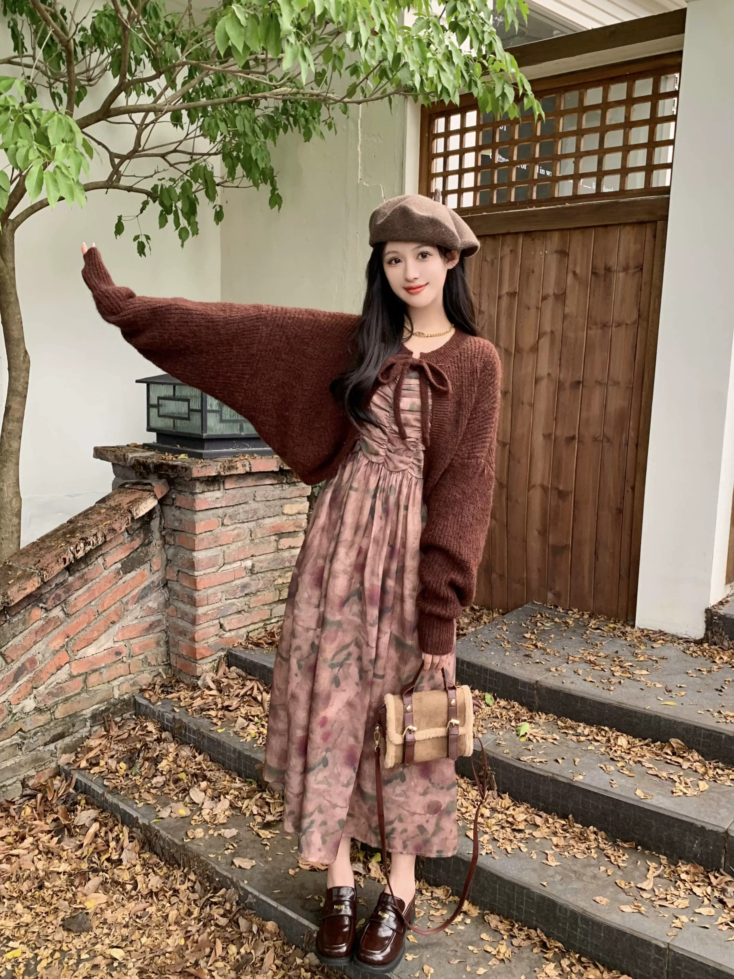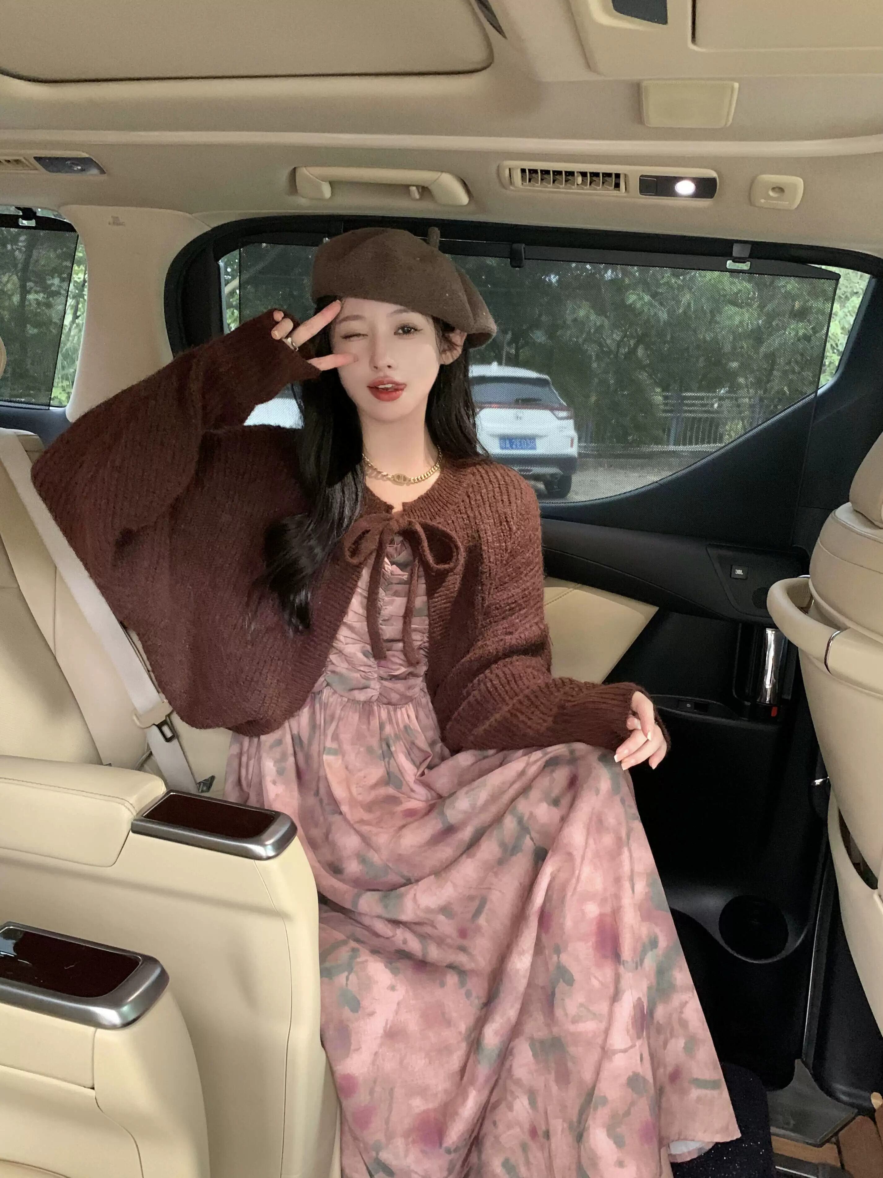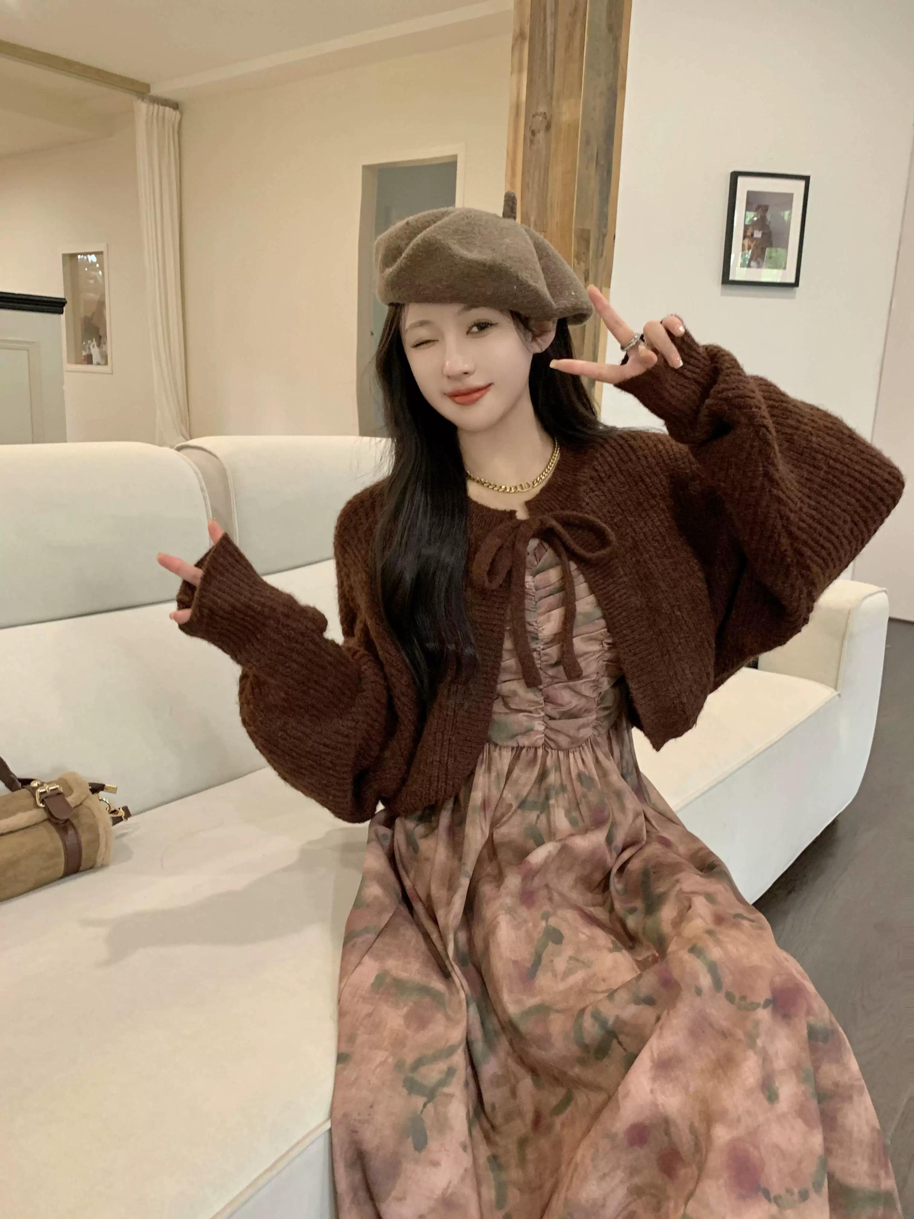 メイラード着用セータージャケット女性秋 2024 新しいスタイル今年の人気のレトロなレースアップショートニットカーディガン オータム 秋物 8571632004098132