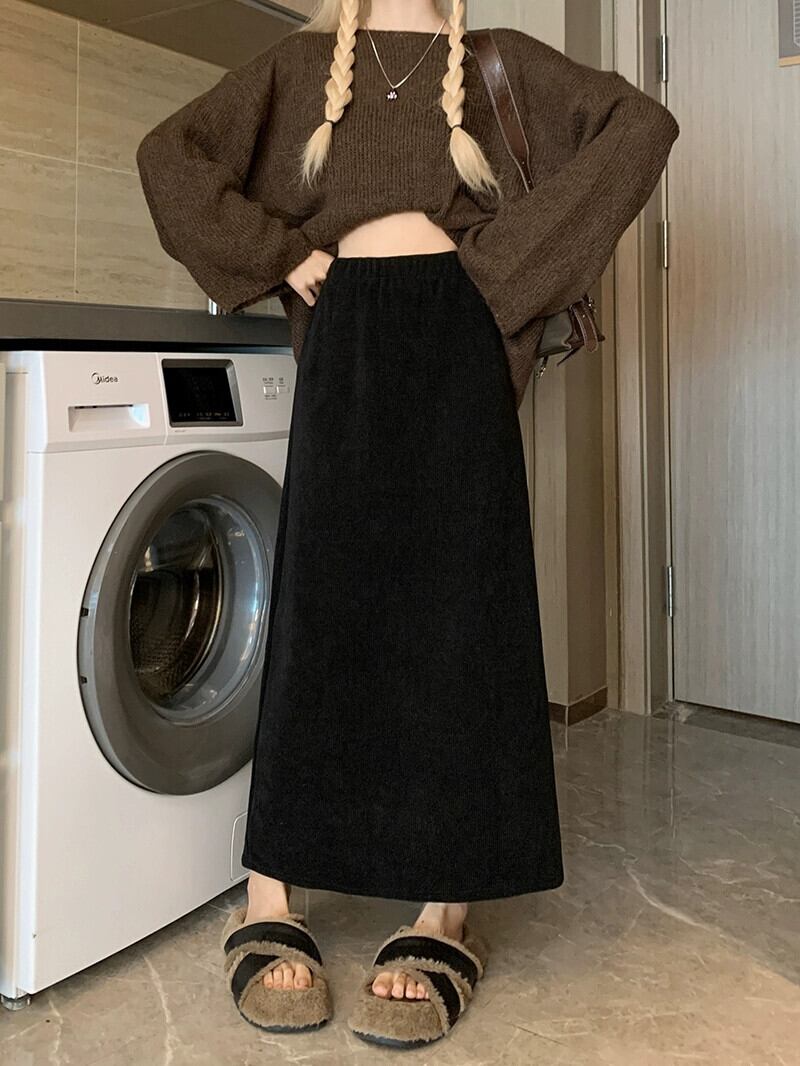 レイクブルースリットスカート女性秋ハイウエストヒップカバースリムAラインスカートハイエンドレトロヒップカバーロングスカート オータム 秋物 857165909097949