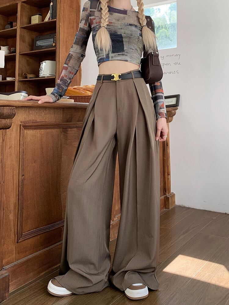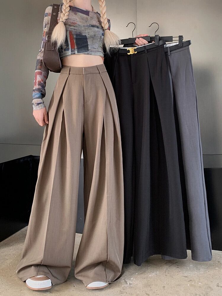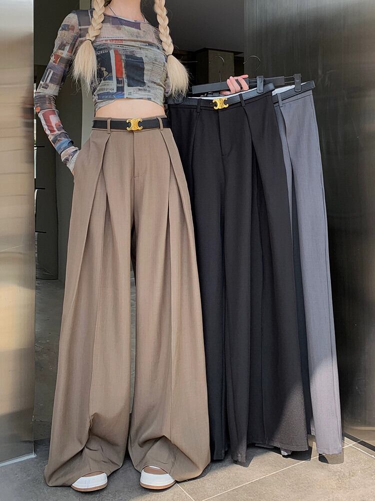 カーキスーツパンツ女性の秋のハイエンドドレープカジュアルパンツ2024新しいルーズストレートフロアレングスワイドレッグパンツ オータム 秋物 8571655661231708