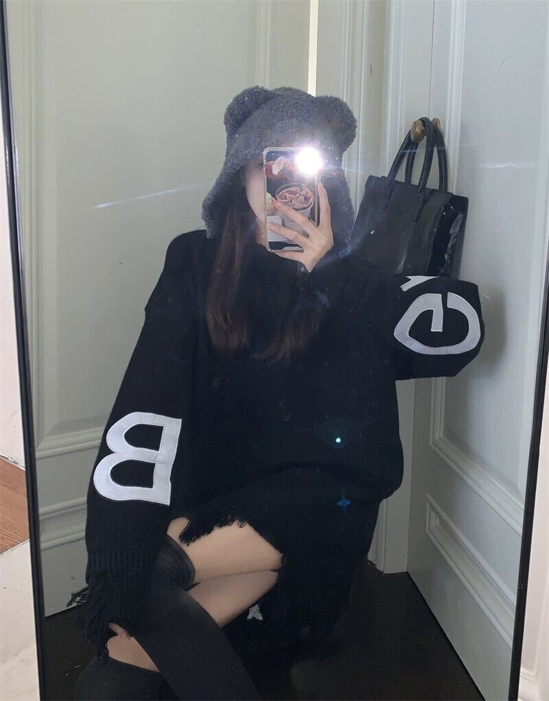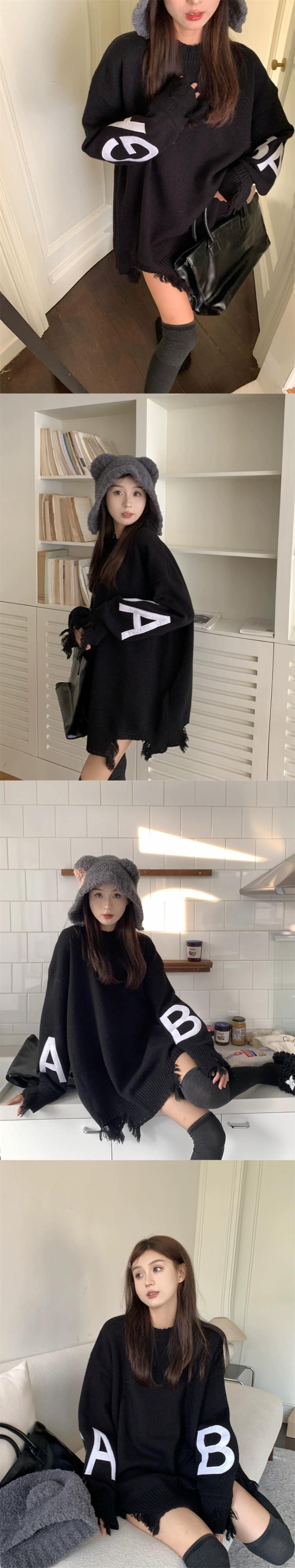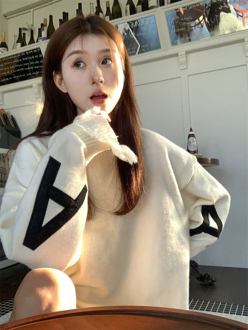 ホワイトテルセーターレディース秋冬2024新しいアメリカンレトロ怠惰なスタイルの不規則なニットセーター オータム 秋物 ウィンター 冬物 8571635490777047