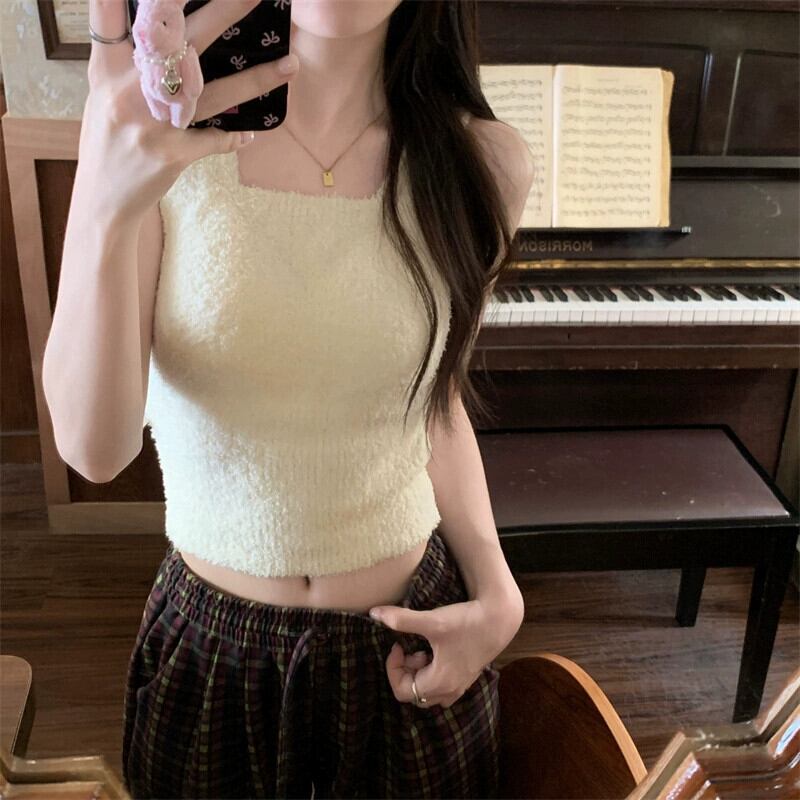 白い豪華なキャミソールの女性の秋冬の暖かいインナー レイヤリング シャツ、胸パッド付きオールインワン ブラジャーと美しいバック トップ ホワイト オータム 秋物 ウィンター 冬物 8571644087593161