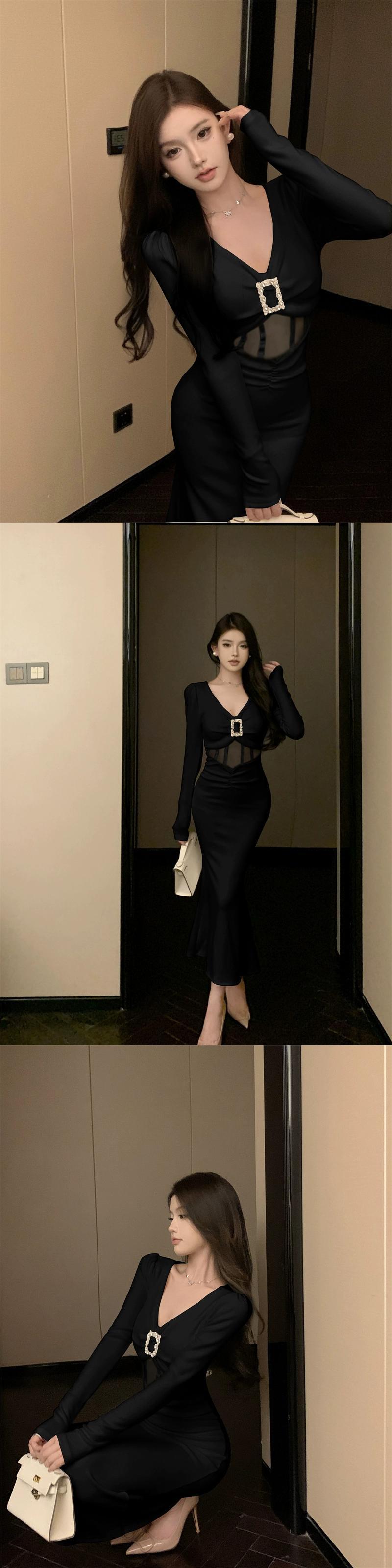 秋冬の白い長袖ドレスの女性、純粋な欲望、セクシーなフィッシュテールスカート、軽くて成熟した女性のスタイル、高級ヒップカバーロングスカート ホワイト オータム 秋物 ウィンター 冬物 ピュア 8571695076110289