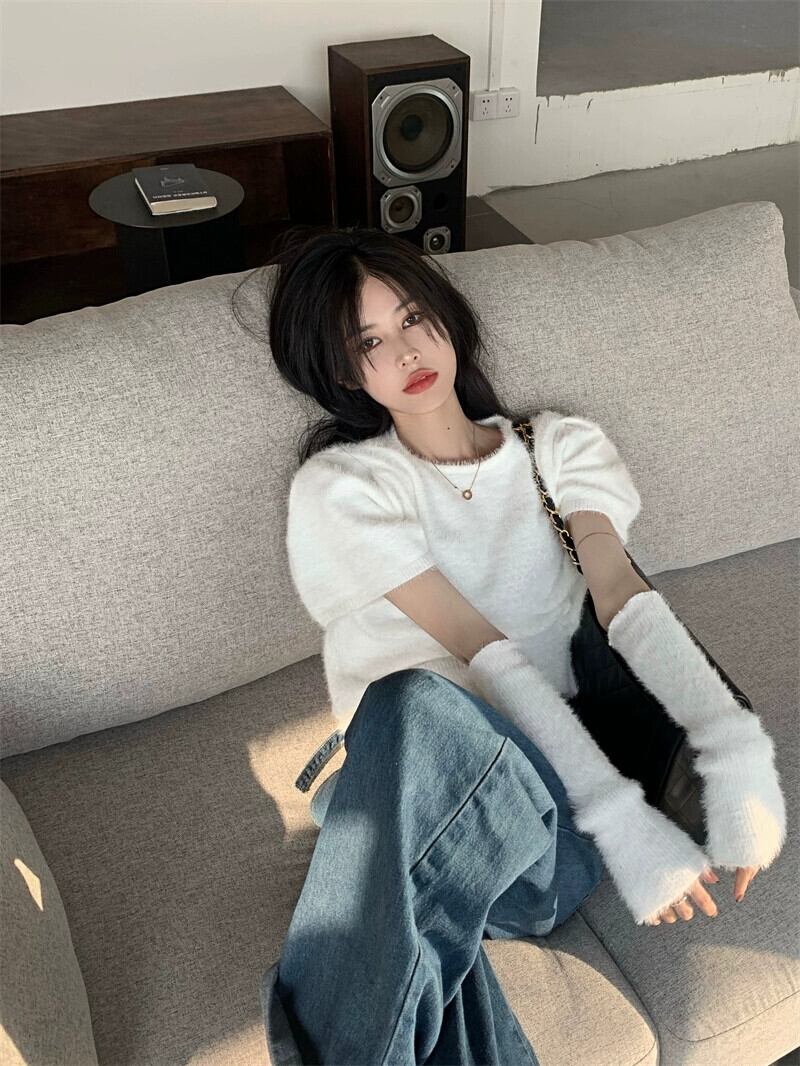 スプリットスリーブホワイトセーターレディース秋服セーター2024新しいスタイル今年人気のソフトでワックス状のハイエンドトップ オータム 秋物 8571673181574177