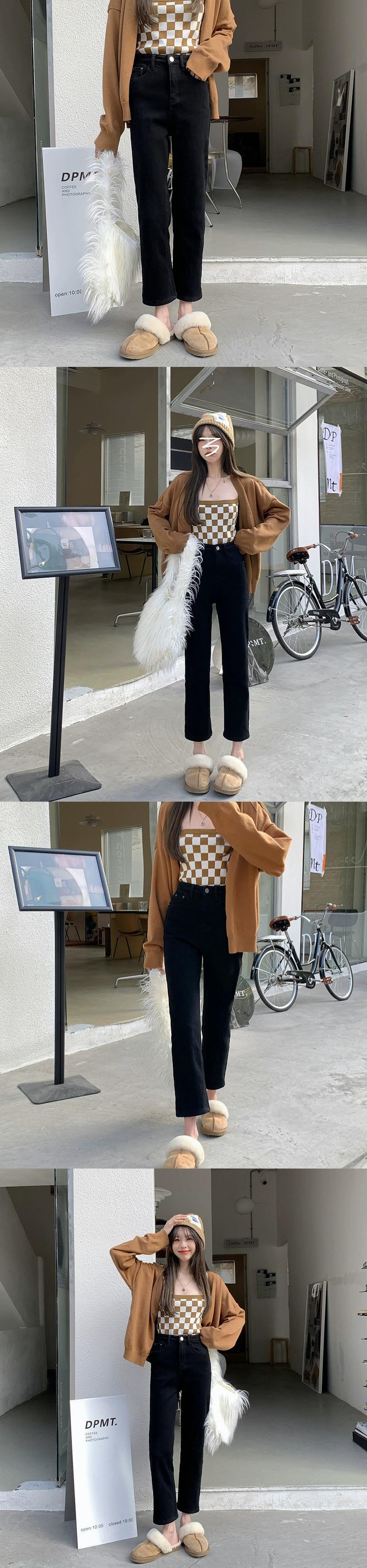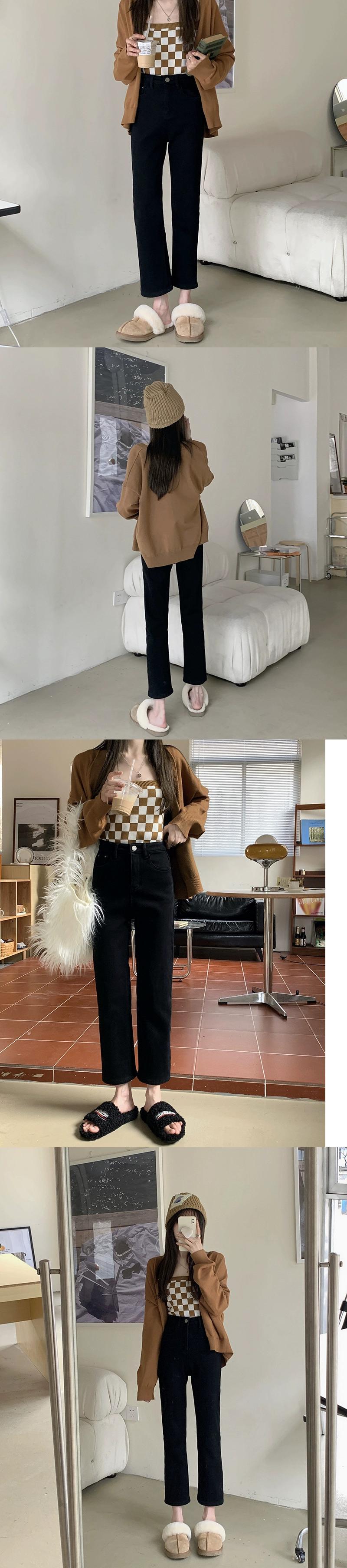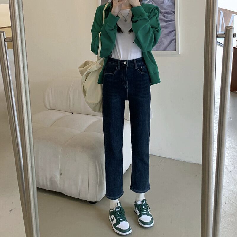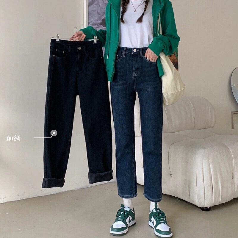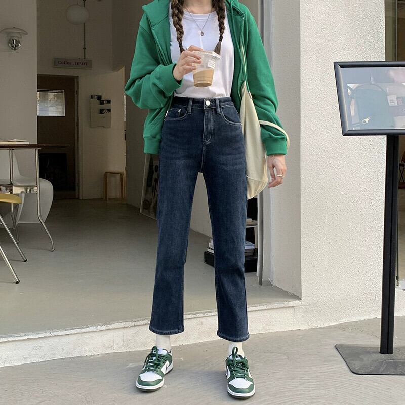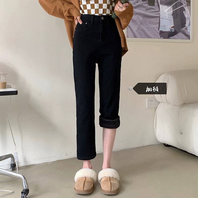 ナインポイントジーンズレディース秋冬ベルベット肥厚ナローパンツ2024新しいスタイルの小さなハイウエストストレートパイプパンツ オータム 秋物 ウィンター 冬物 8571615671988471