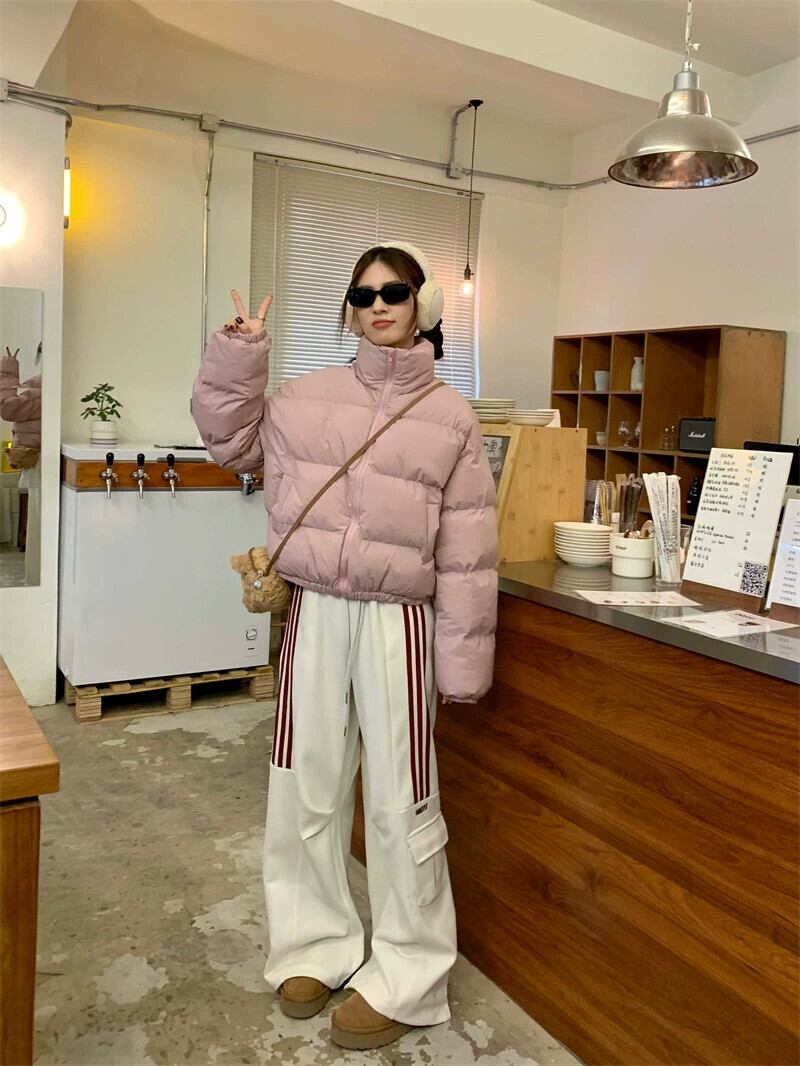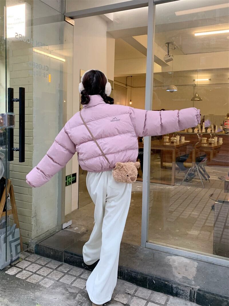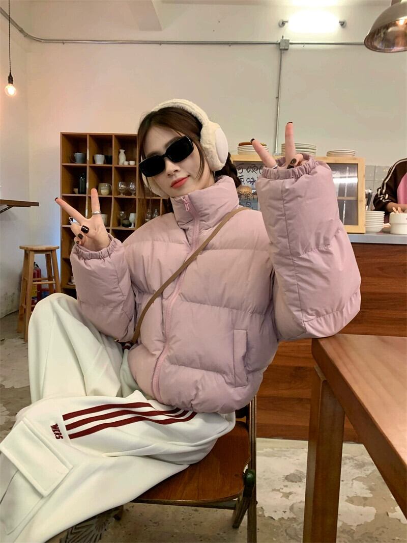 ピンクの綿コートの女性の冬肥厚パンコート 2024 新学生ショートコート コットン ウィンター 冬物 8571670727196079