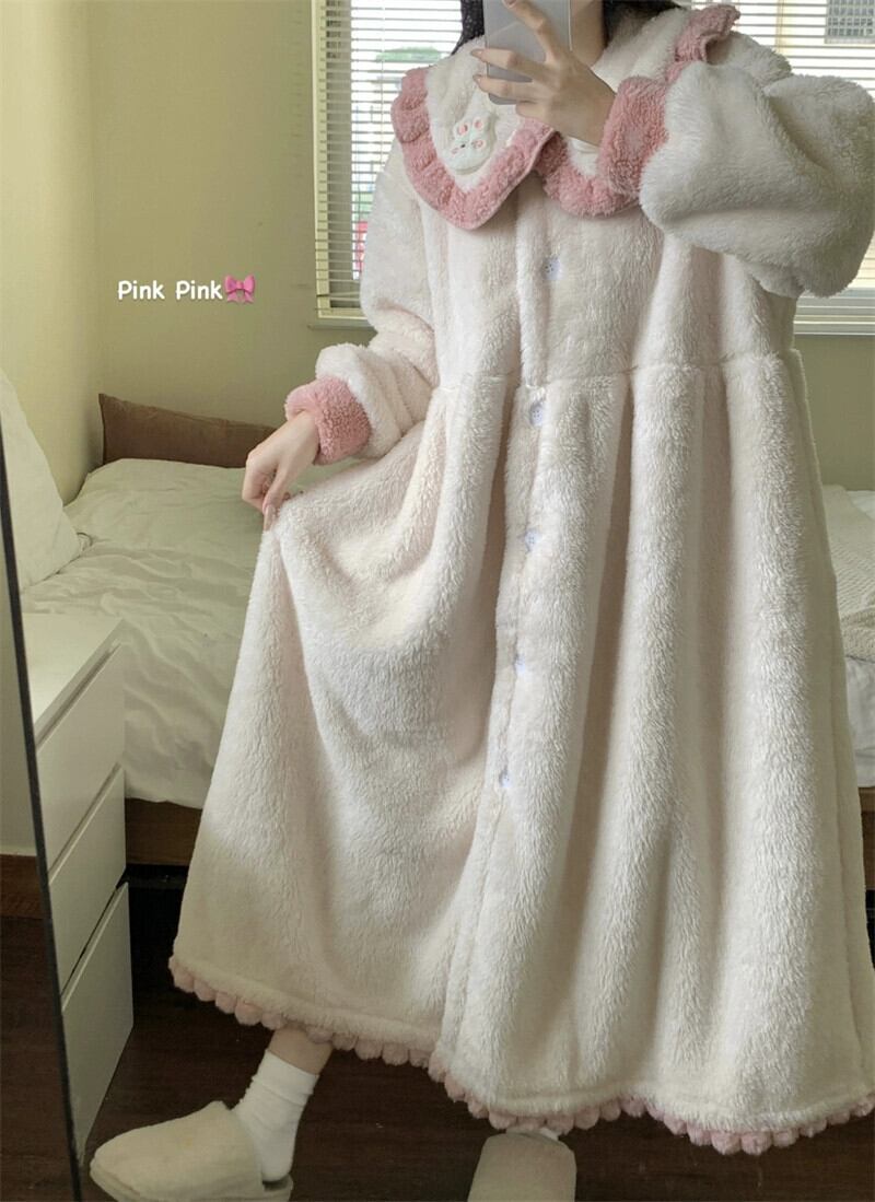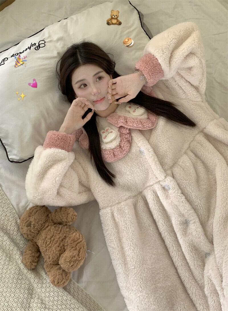 冬にはコーラルベルベットのナイトガウン、さらにベルベットと厚みのある外で着られるロングパジャマ、甘くてかわいいプリンセススタイルのホームウェア 大人ガーリー スウィート キュート カジュアル ウィンター 冬物 8571632995345595